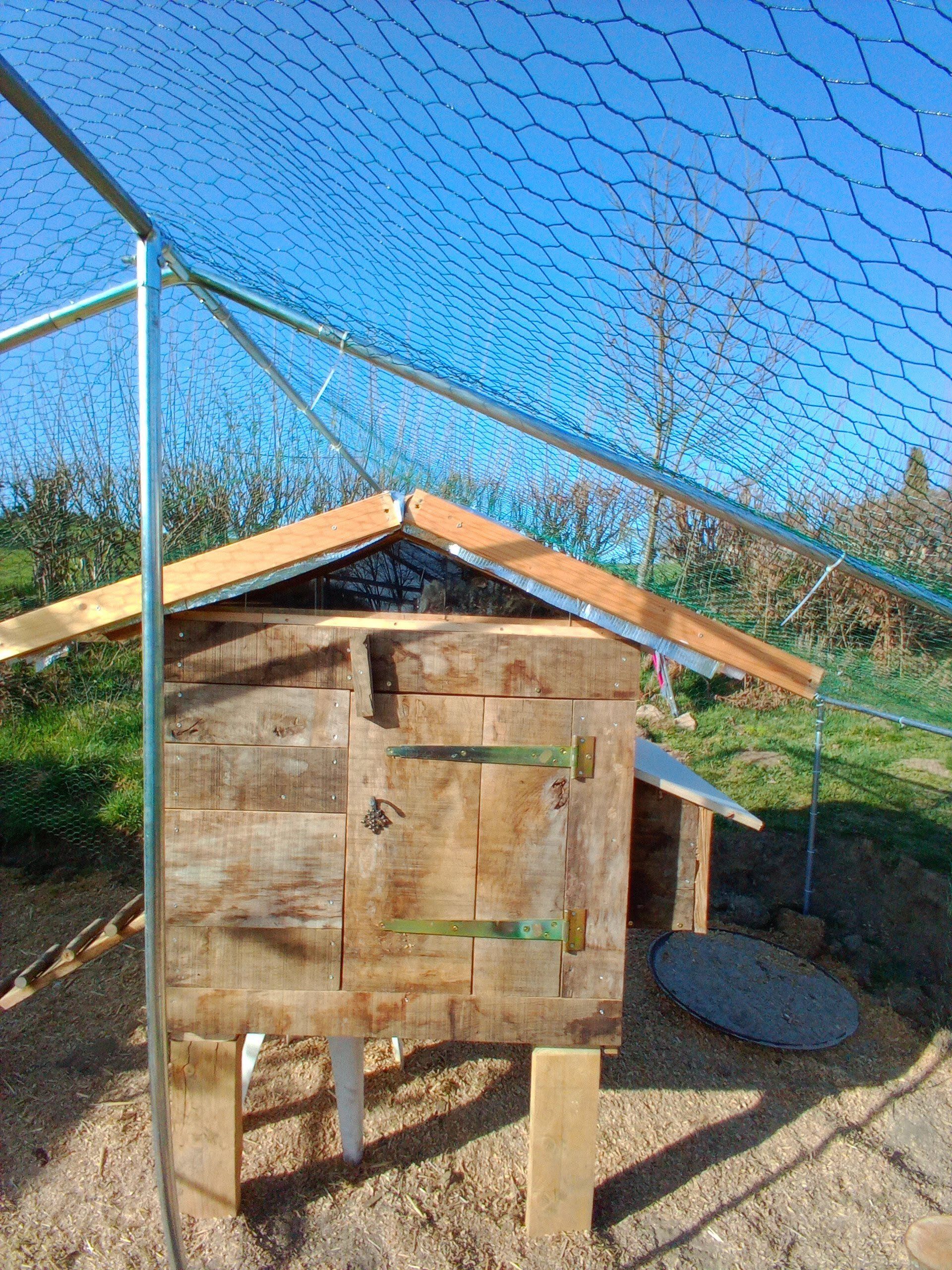 Temperaturen rond de 15 graden en droog. Nieuw nachthok voor de kippen bijna klaar, opruimen, gewond....