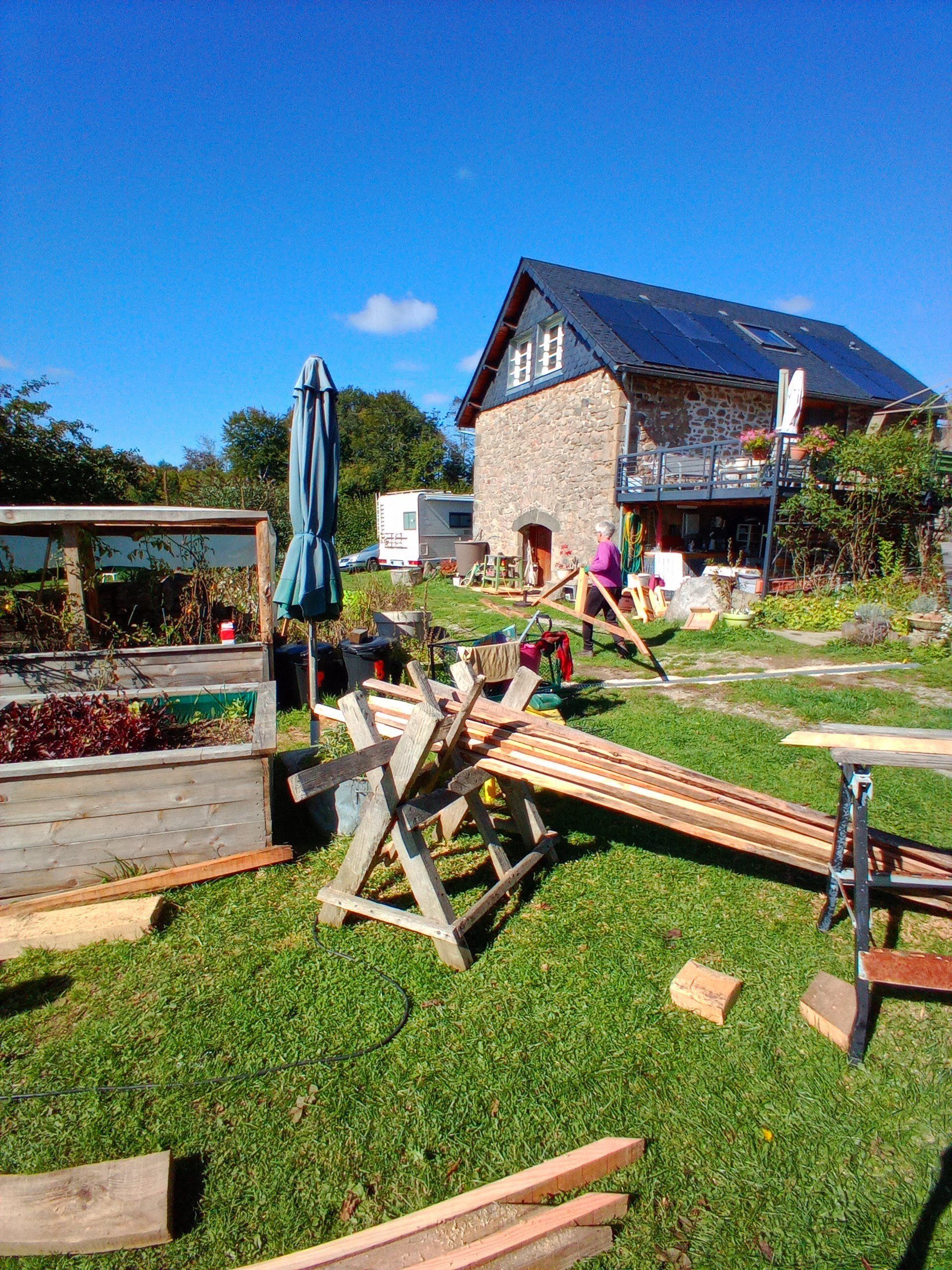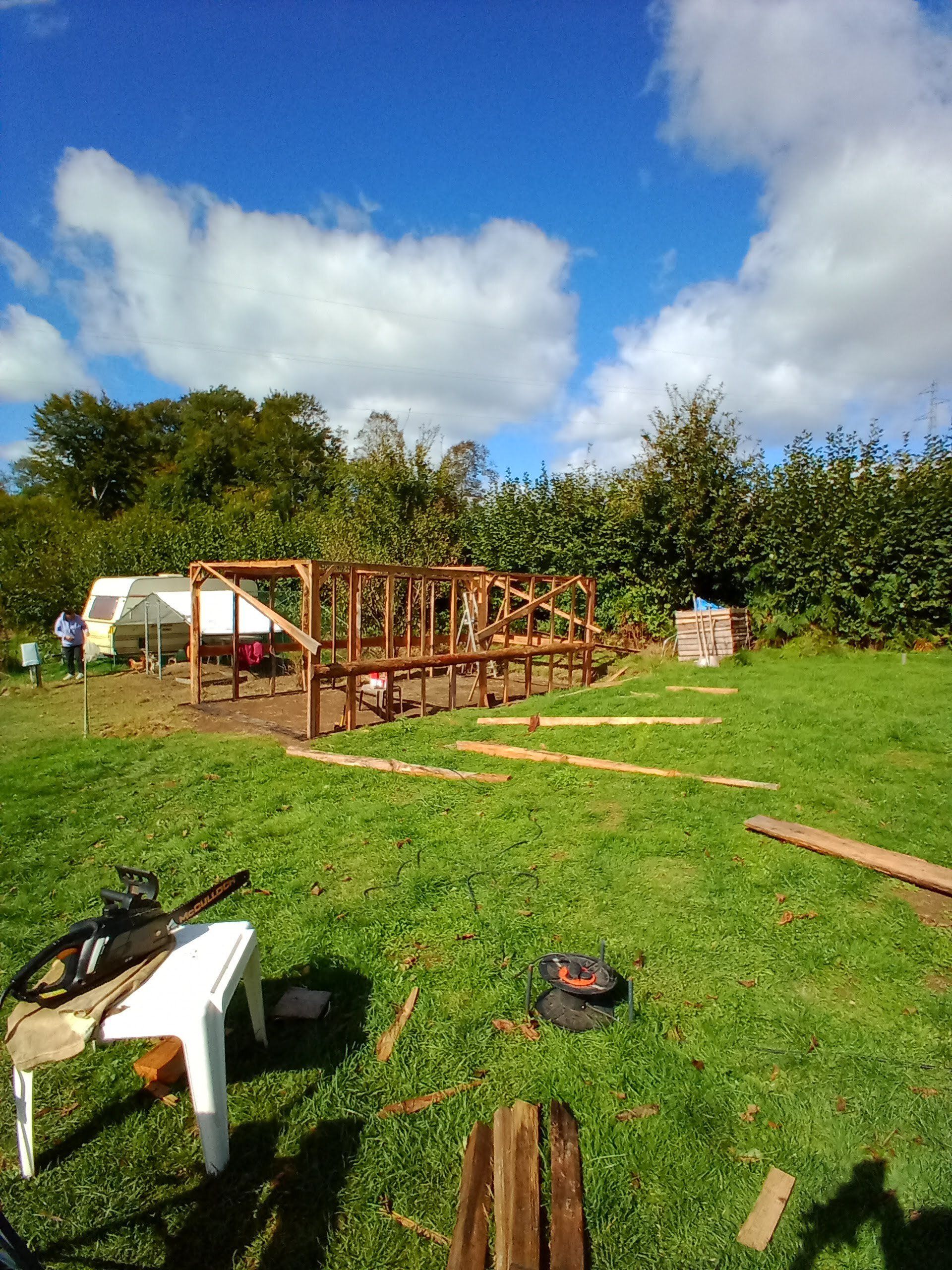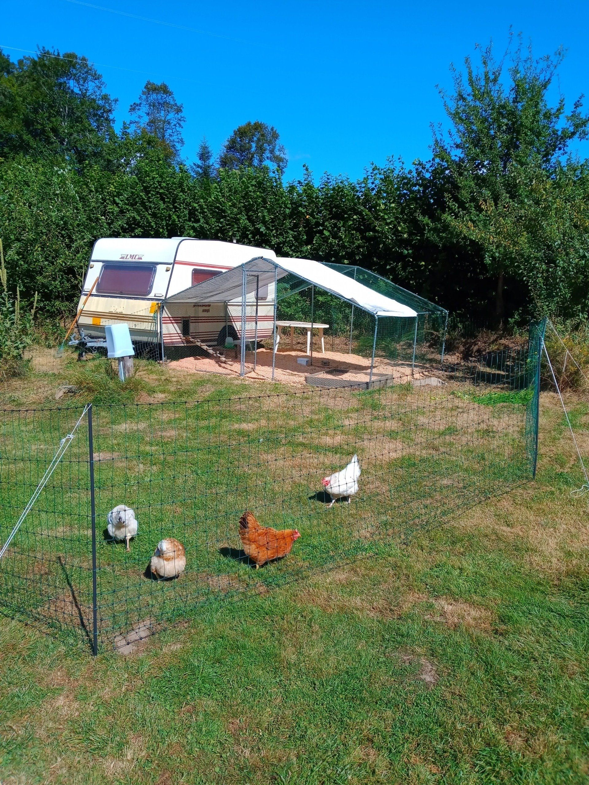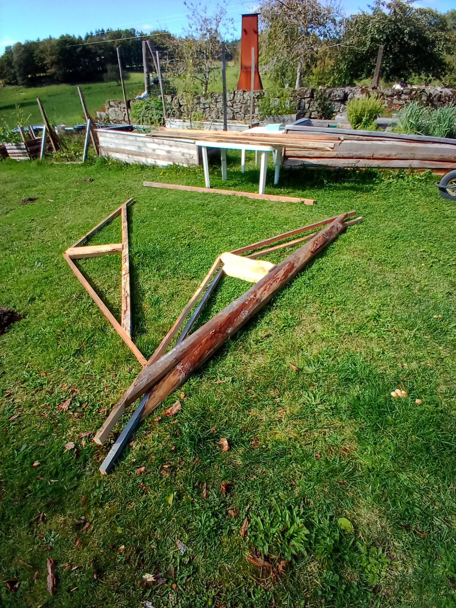 Nog steeds mooi weer, maar wel koele nachten, hout weg werken, Grote caravan gaat weg en voor de kippen een ander onderkomen enz.....