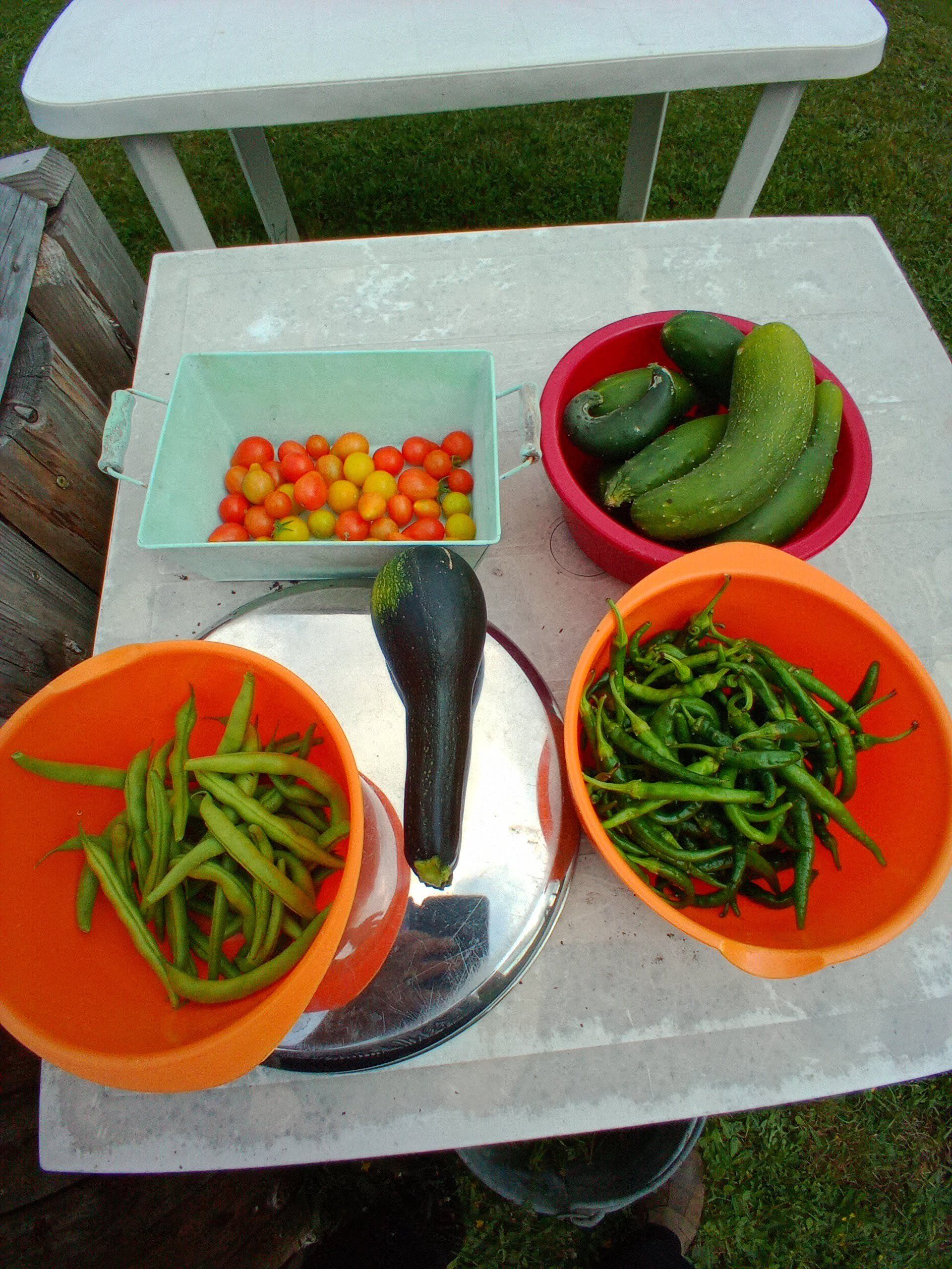 Het weer was redelijk met af en toe een flinke regenbui met mooie luchten, binnen de kachel aan, groente en fruit uit eigen tuin, enz.....