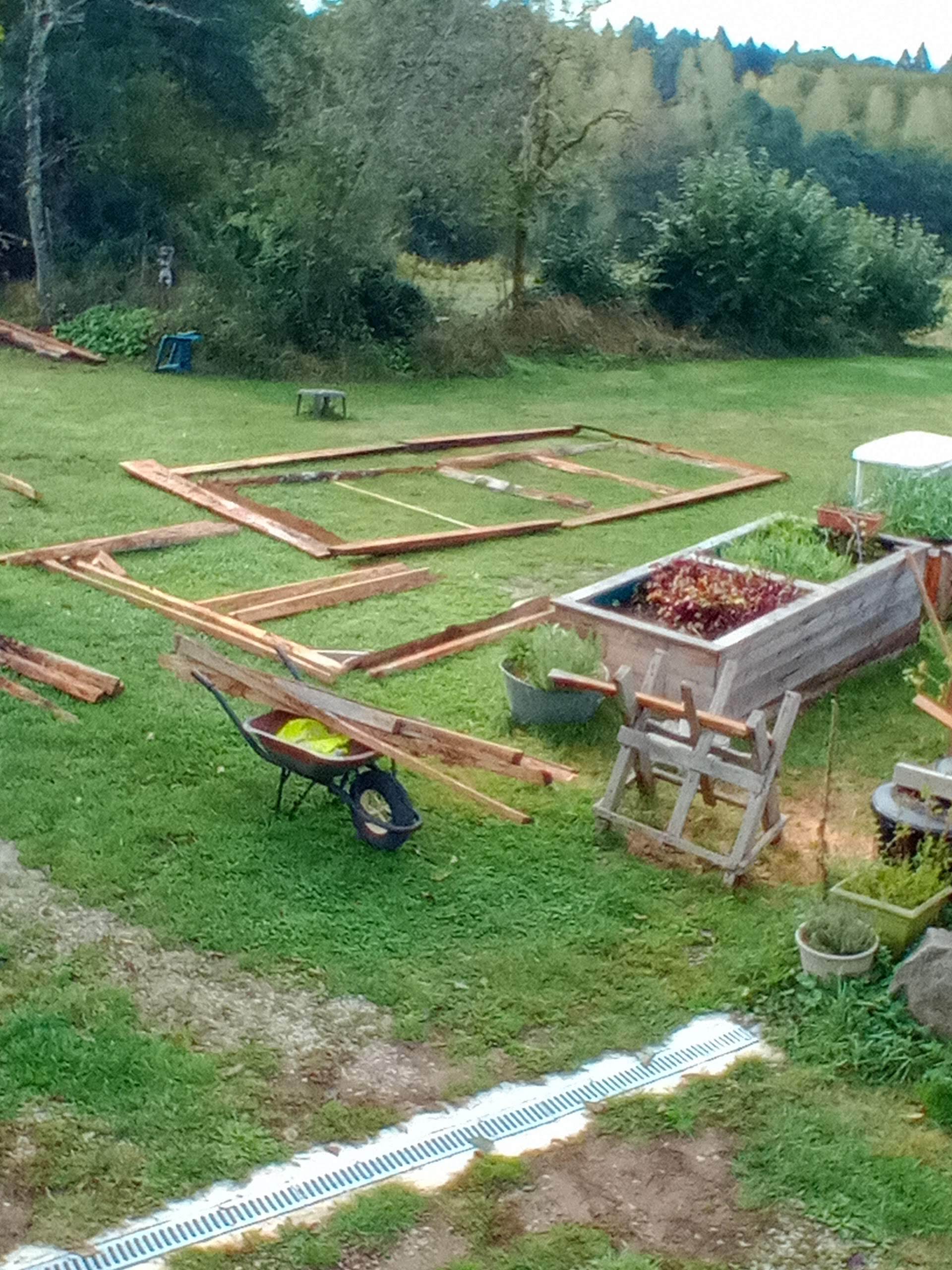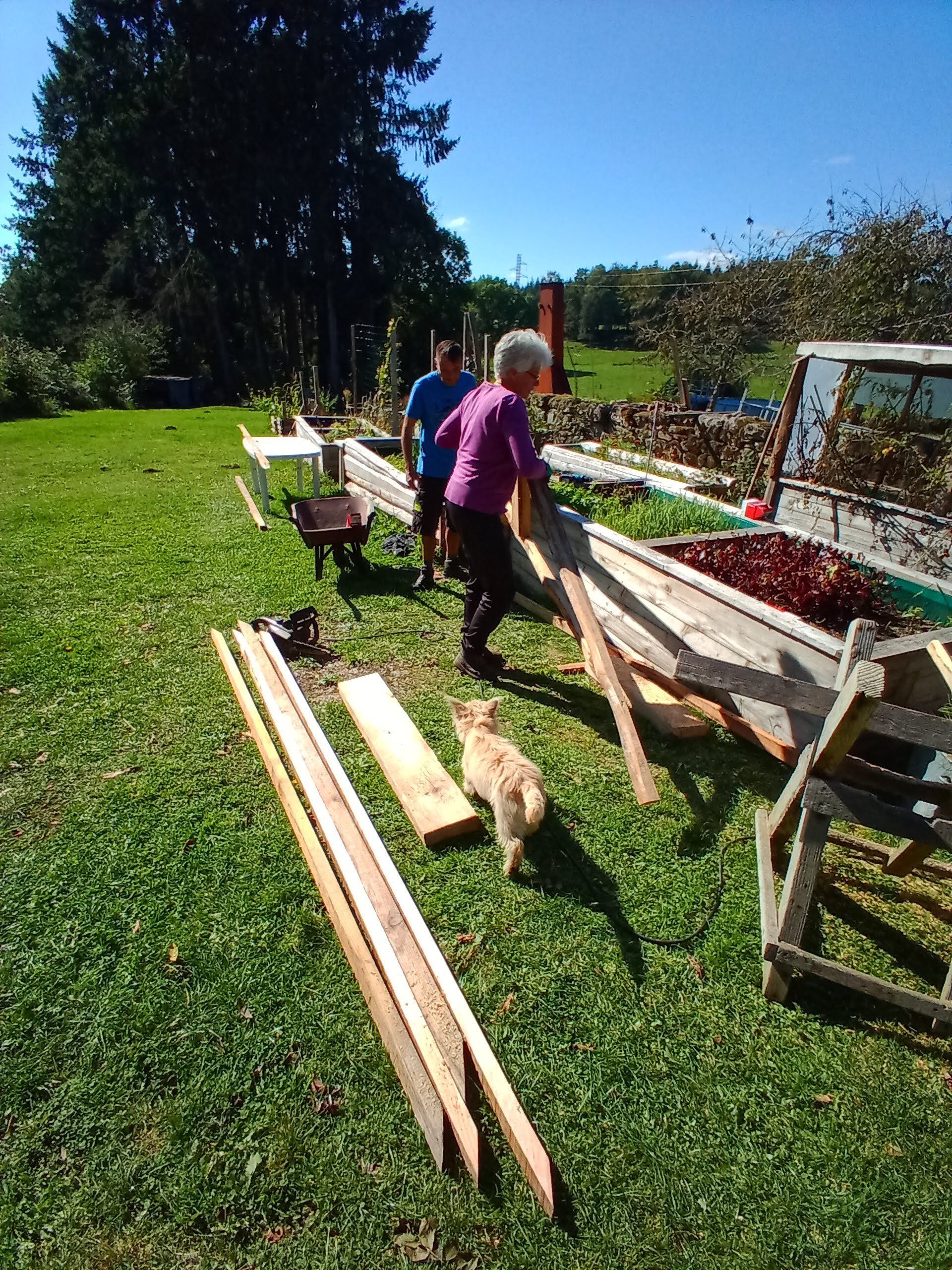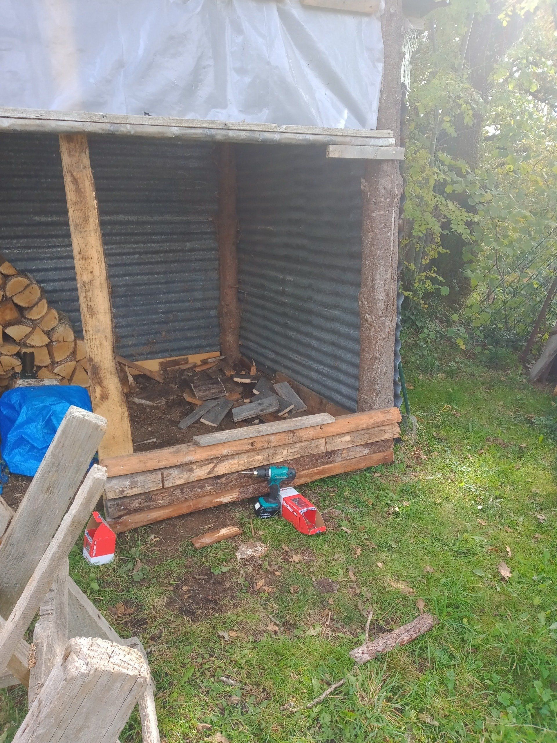 Zeer ontstuimig weer, weer hout halen, 4e groentebak mee verder en uitzoeken voor een kippenren....