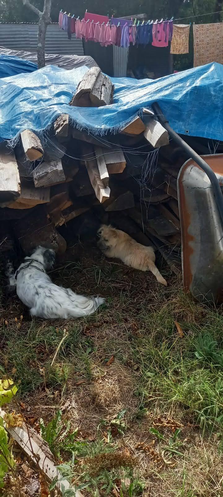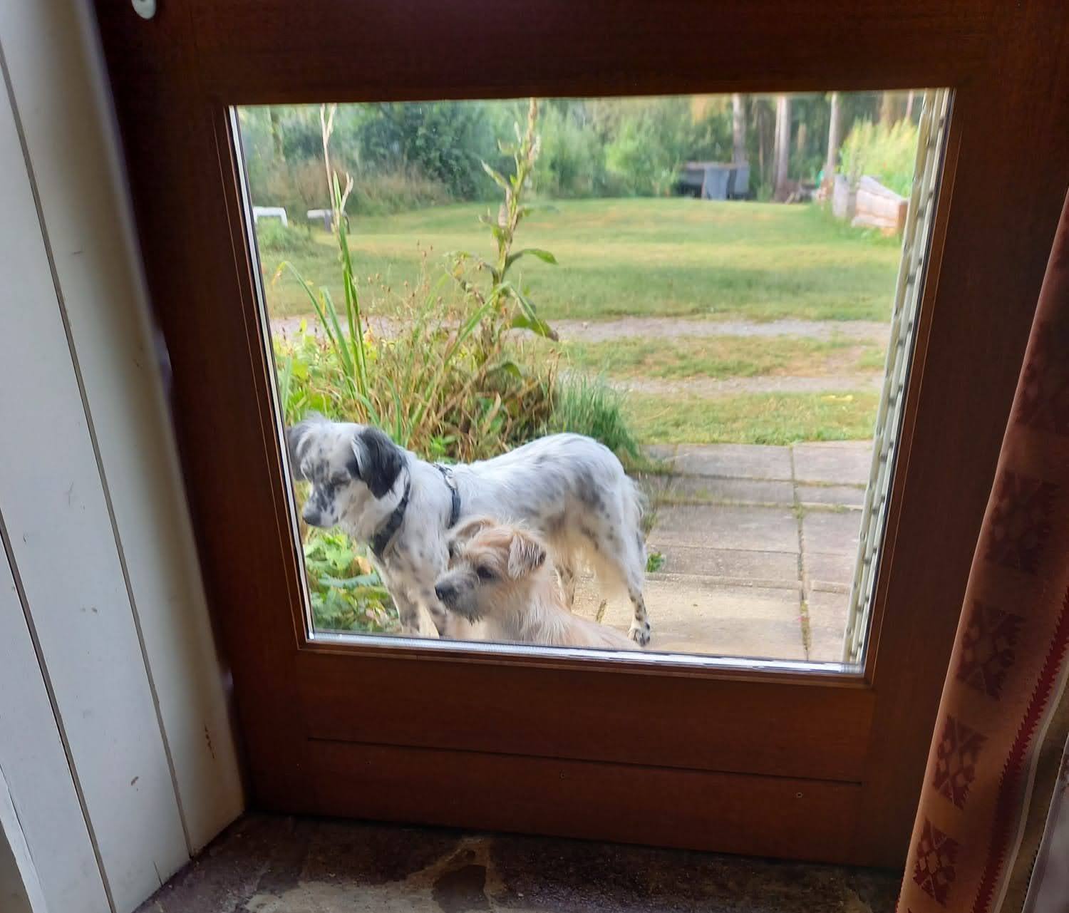 Mijn gasten en hun hondje, Bella, hebben het naar de zin. Ze eten regelmatig buiten op het terras, gezellig op z'n frans met een wijntje erbij. De hondjes spelen regelmatig samen. Bella komt regelmatig bij het hekje staan om Bailey op te halen. "Bailey kom je buiten spelen" En dat doen ze dagelijks. Samen met een stok spelen of rennen over het terrein. Samen naar binnen kijken of samen verstoppen bij de stapels hout.