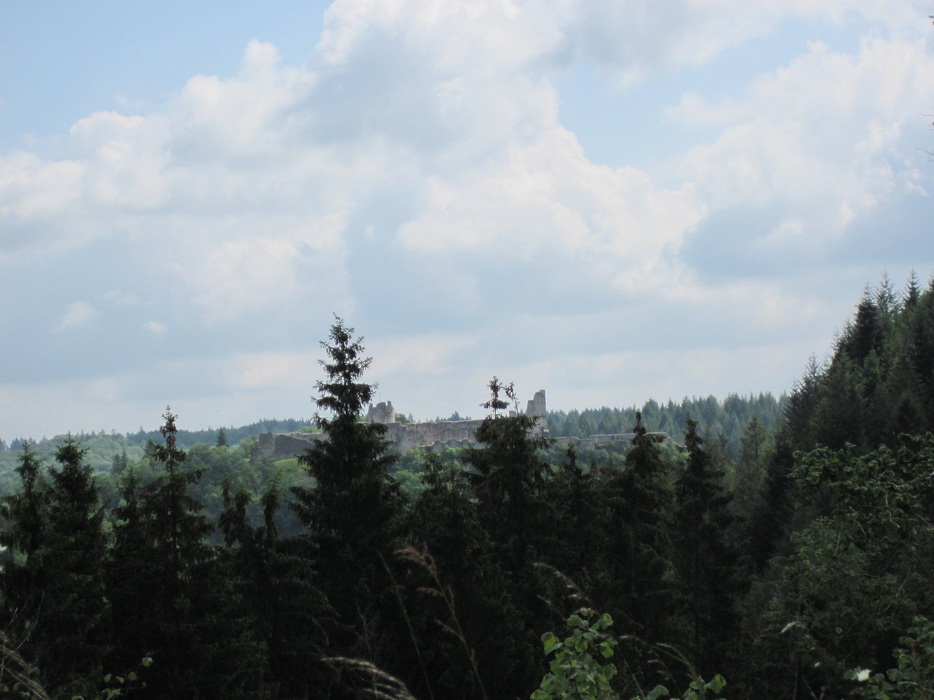 De ruïne staat boven op een berg en is als ruïne gerestaureerd.