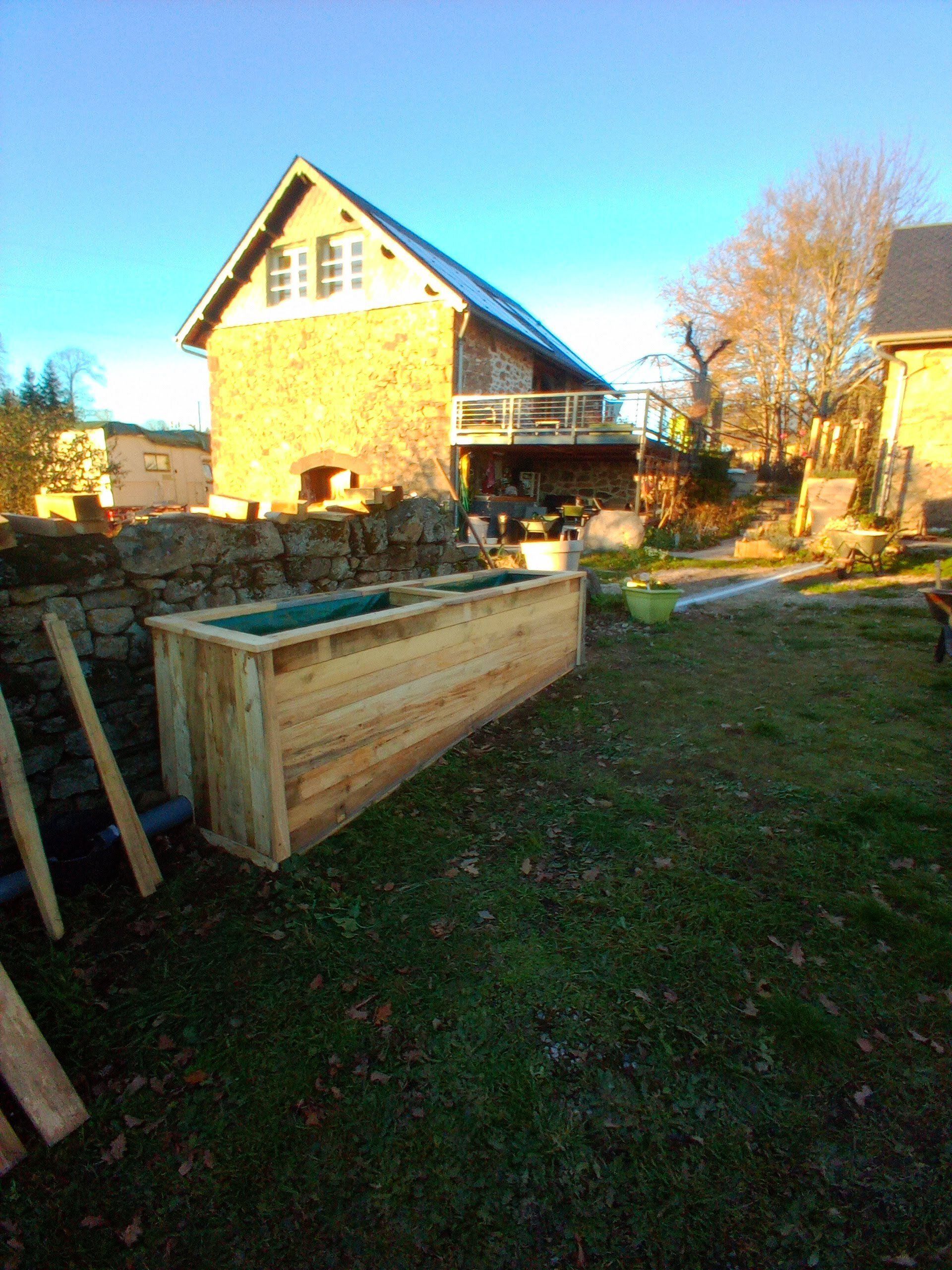 Ik ben begonnen met het maken van verhoogde groentebakken. 3 heb ik er inmiddels klaar. En die groenteplenten hebben water nodig. Dus moest ik ook een systeem bedenken en maken om regenwater van het vakantiehuis op te kunnen vangen. Veel materiaal was al aanwezig. Ik moest een geul graven in de oprit met een pikhouweel. Wij hebben hier meer steen dan grond. Pff. Elke dag een beetje graven, dan kom je er vanzelf. Daarna heb ik een systeem van oude regenpijpen en dakgoten gemaakt. Om uiteindelijk uit te komen in de eerste opvangbak aan het eind van de muur. En aangezien ik hier op een berg woon is er niets waterpas en moet alles op maat worden gemaakt. Uiteindelijk komt het water in drie bakken terecht en kan ik 1800 liter regenwater opvangen. De laatste bak van 1500 liter moest ook worden ingegegraven. Daar ben ik 3 dagen mee bezig geweest. Diezelfde nacht heeft het nog geregend en ik was dan ook erg benieuwd naar het resultaat. Alle drie bakken zaten tot de nok aan toe vol. Wat was ik trots op mijzelf.