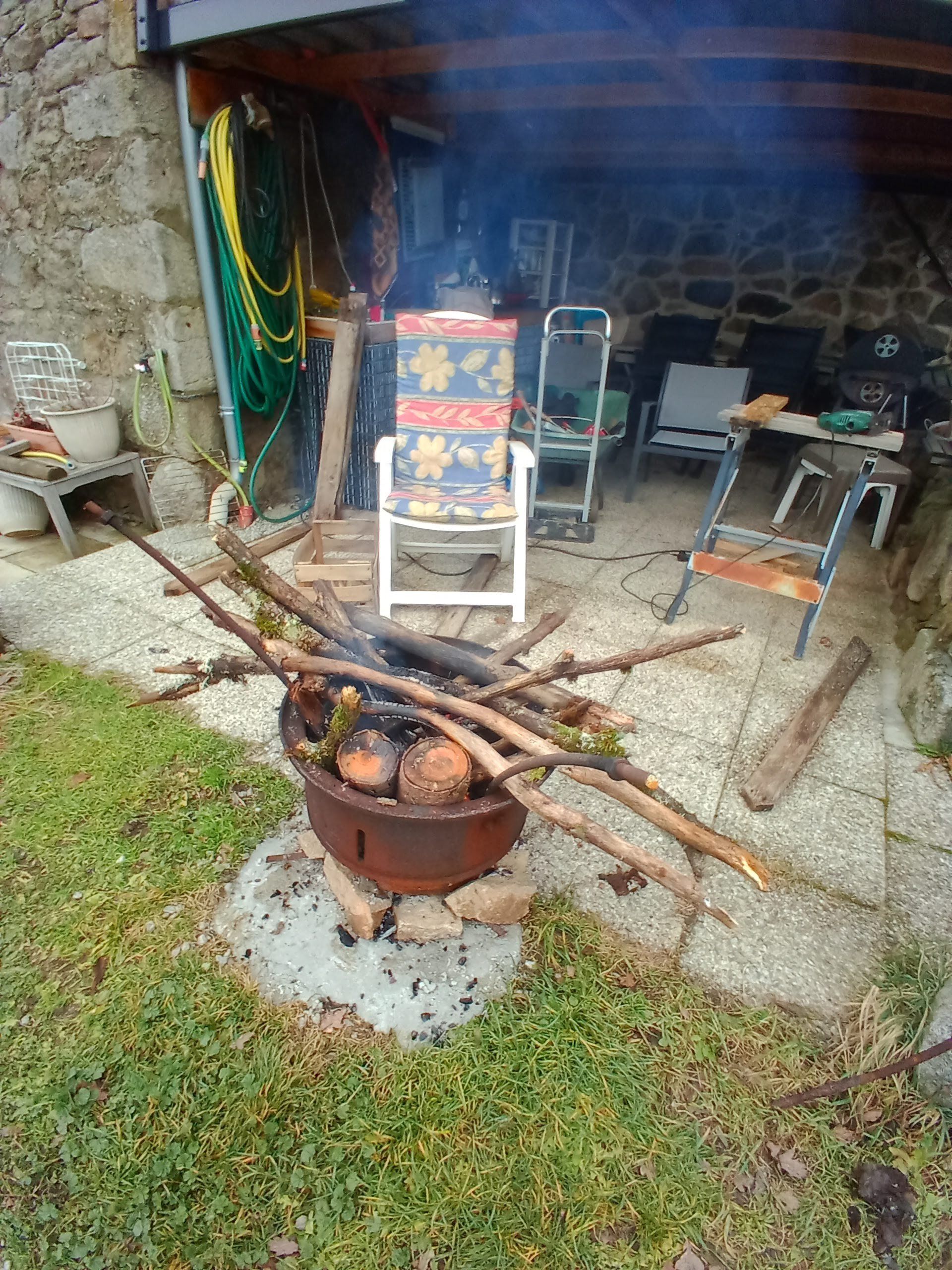Ook heb ik een stookplaatst van een oude vrachtwagen velg gecreëerd vlak bij de buitenkeuken. Die velg heb ik in mijn vorige huis in Nederland ook veel gebruikt om een vuurtje te stoken.