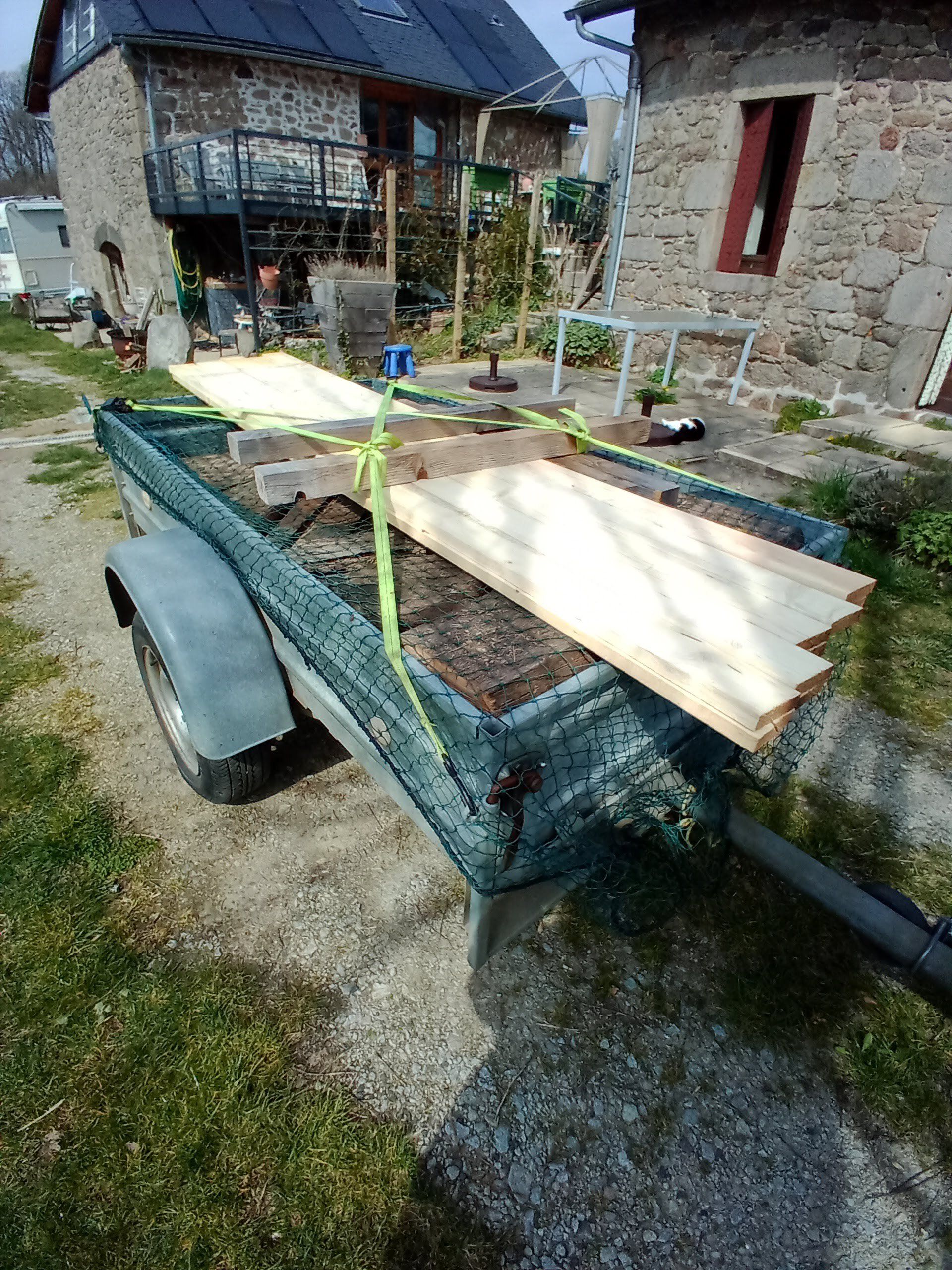 Vrijdagmorgen ben ik weer naar de zagerij gereden om weer een aanhanger vol met hout op te halen. Dit is hout voor het nieuwe nachthok enz.