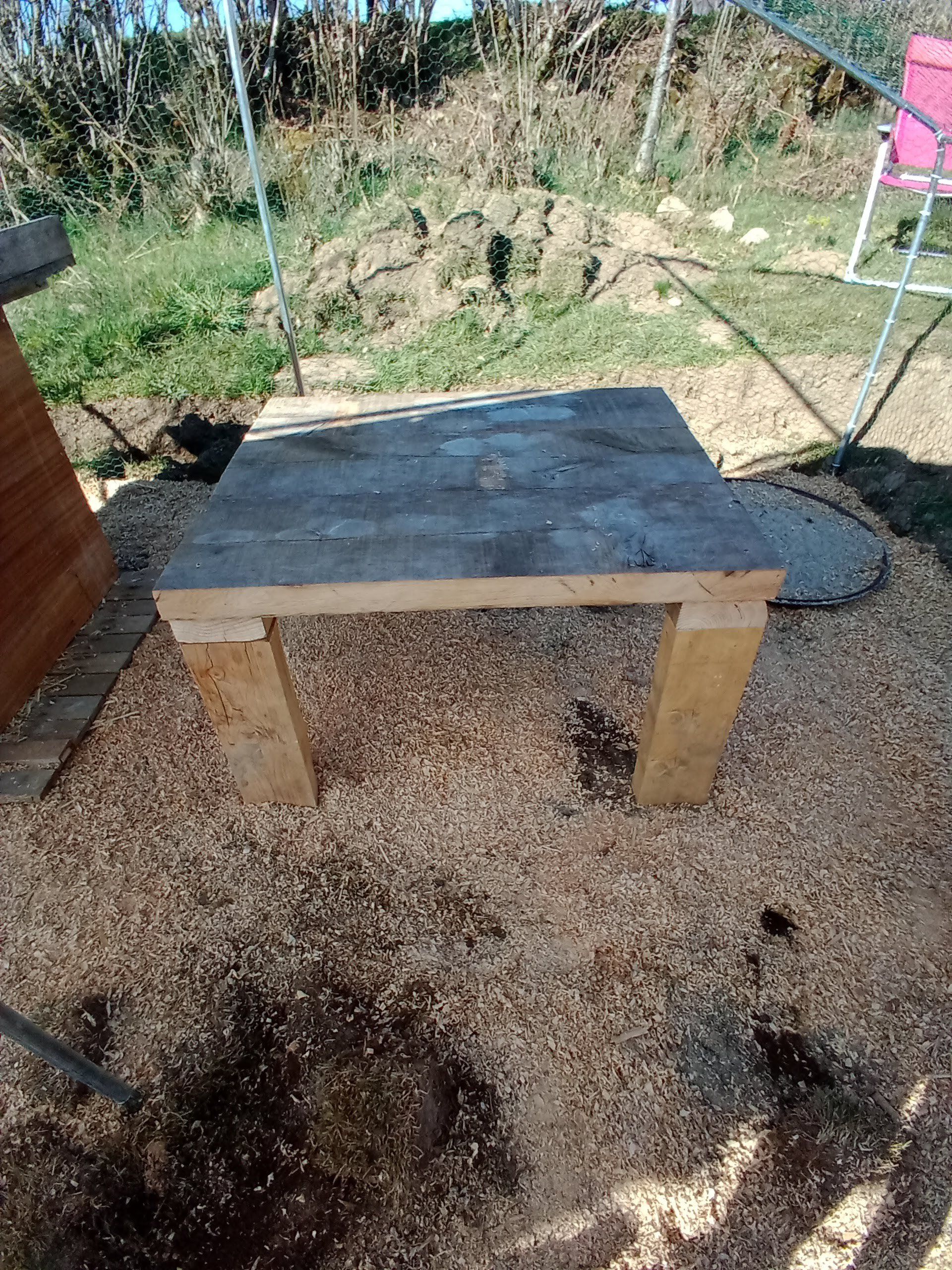 Maandag ben ik begonnen met het nieuwe nachthok voor mijn kippen. Ik maak dat van de eikenhouten schaaldelen die al jaren ergens op de zagerij hebben gelegen. Dat wil zeggen dat ik van elke plank aan de zijkanten een rechte kant moet zagen. Maar gelukkig is de zaag van de zaagtafel weer scherp en zaagt hij weer goed.