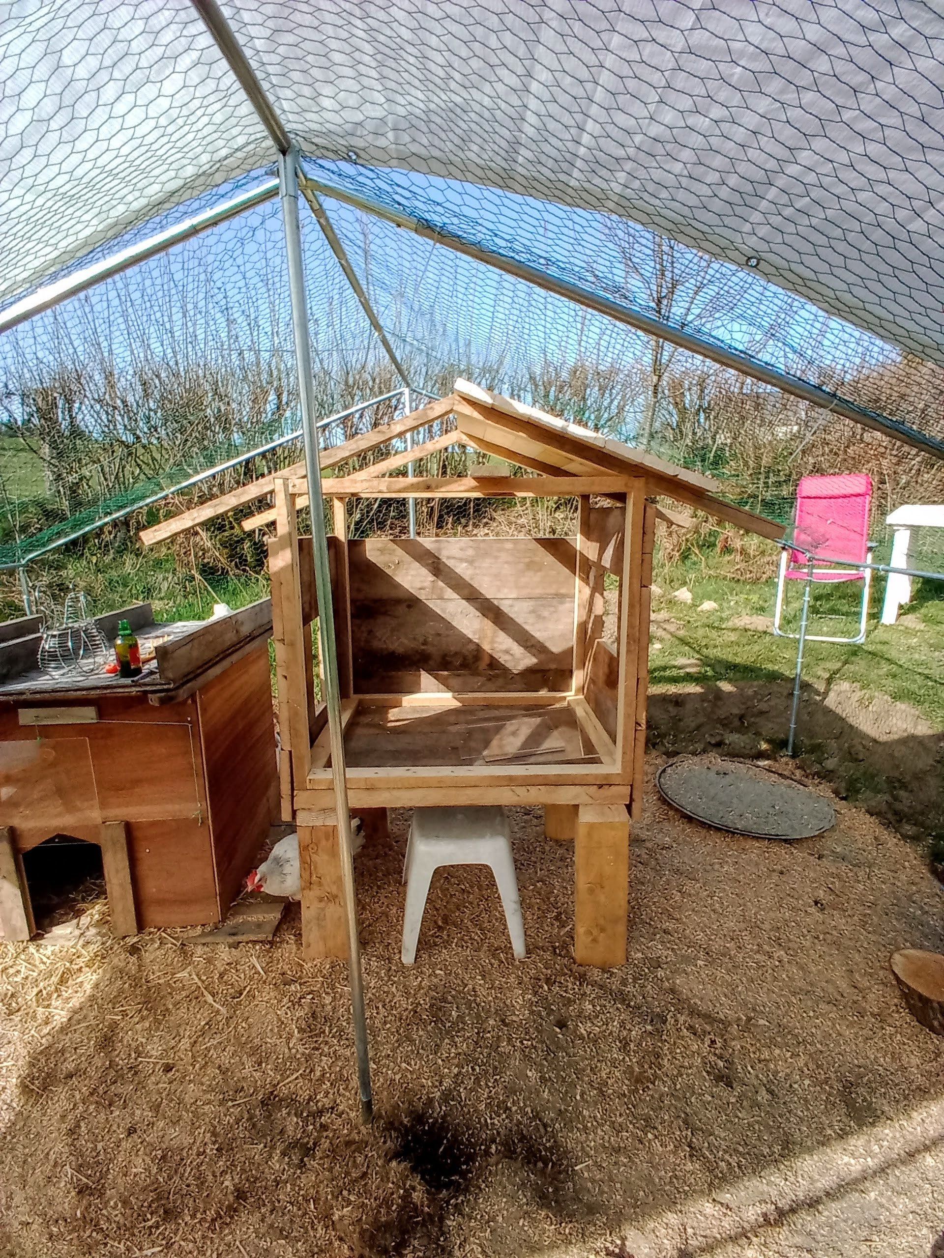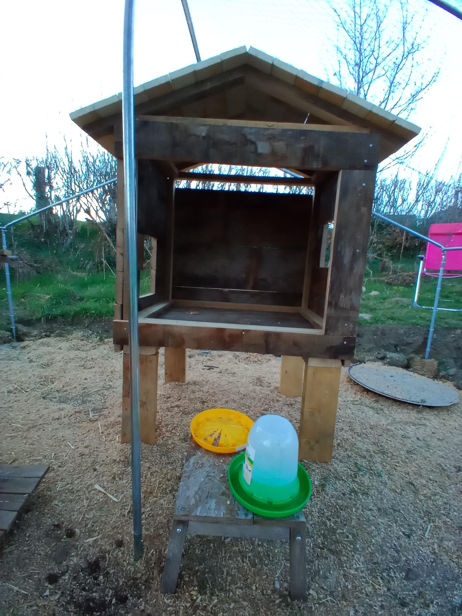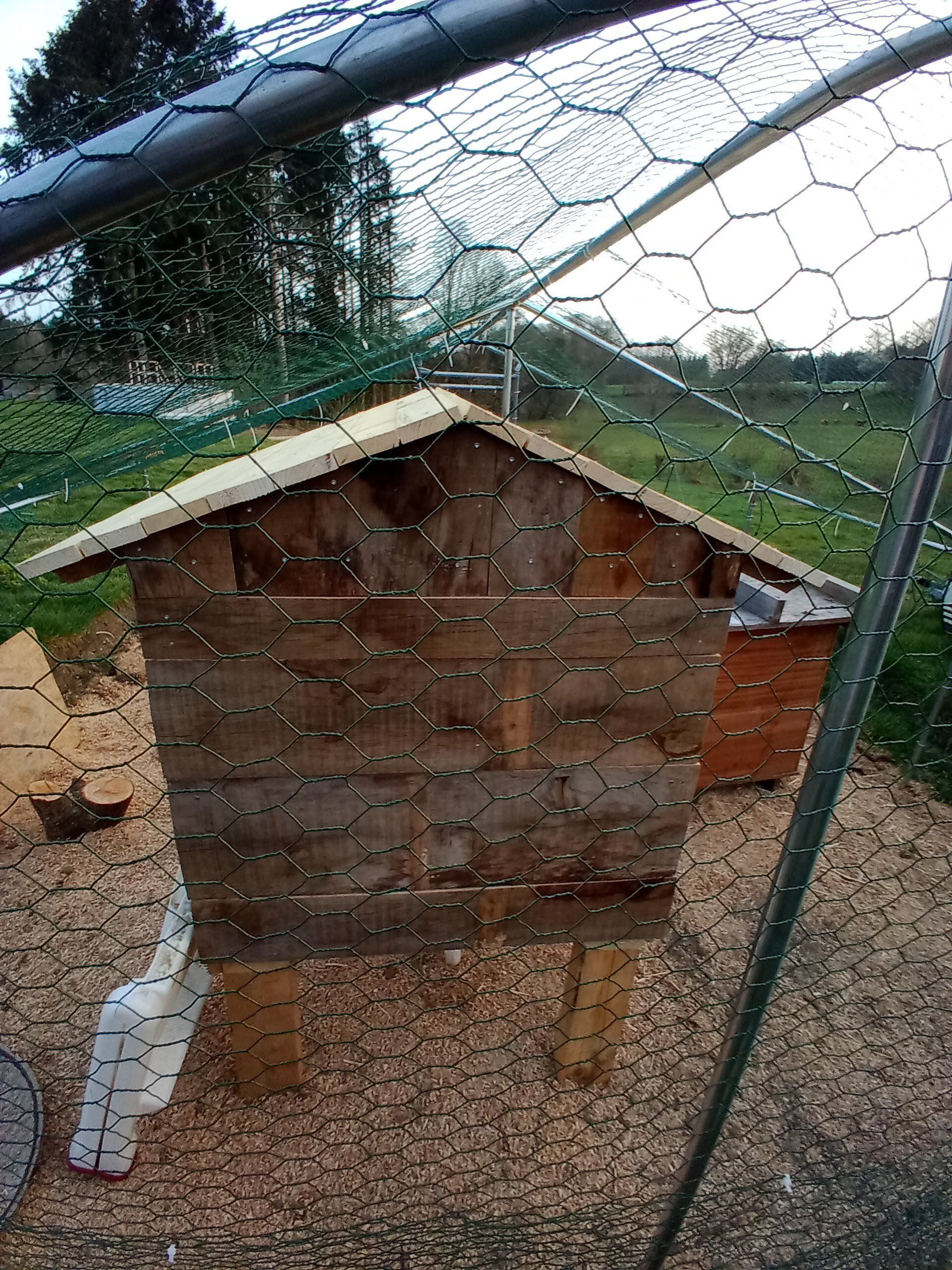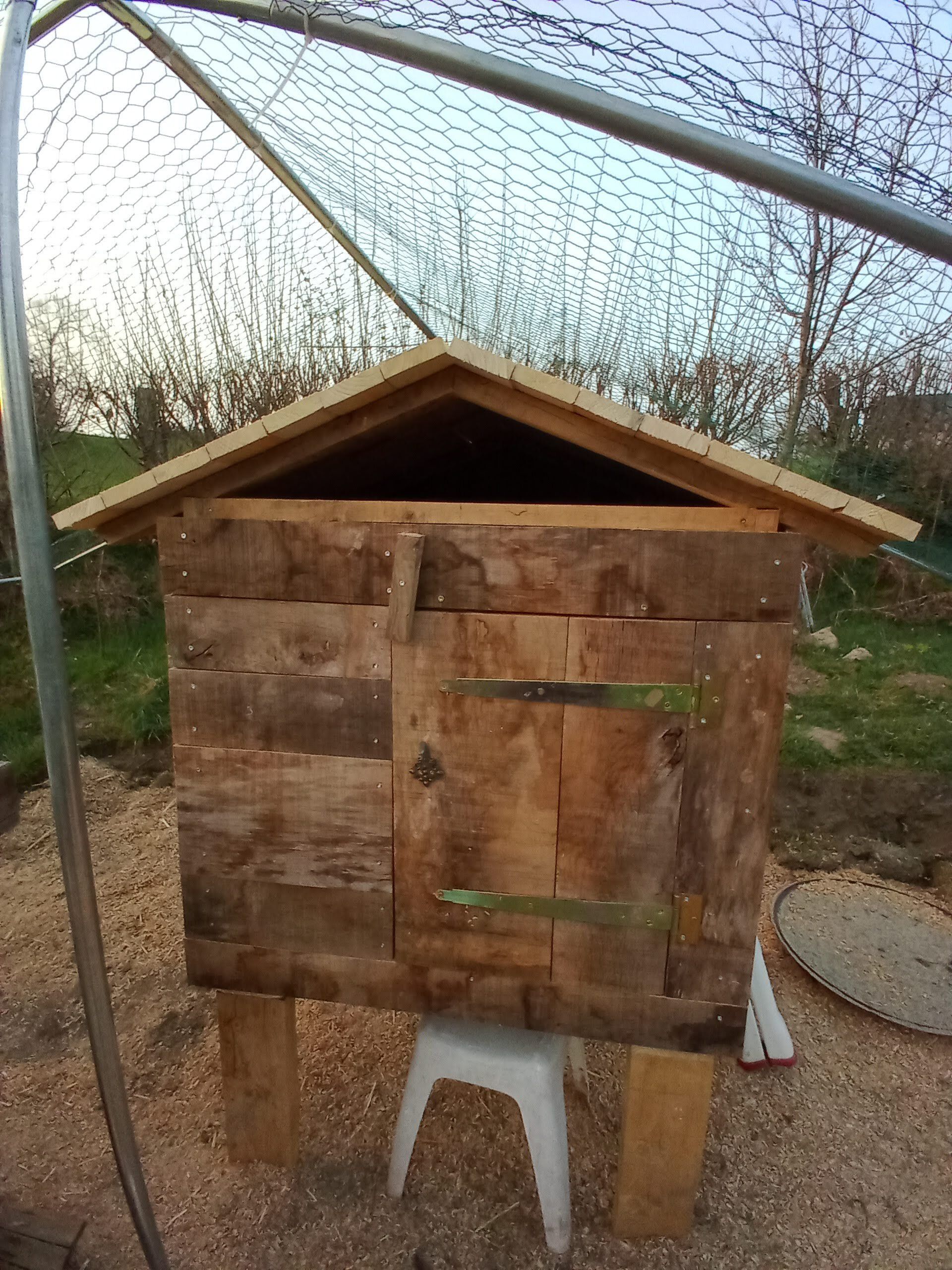 De bodem van het hok is van planken die 5 cm dik zijn en de muren zijn 3cm dik.