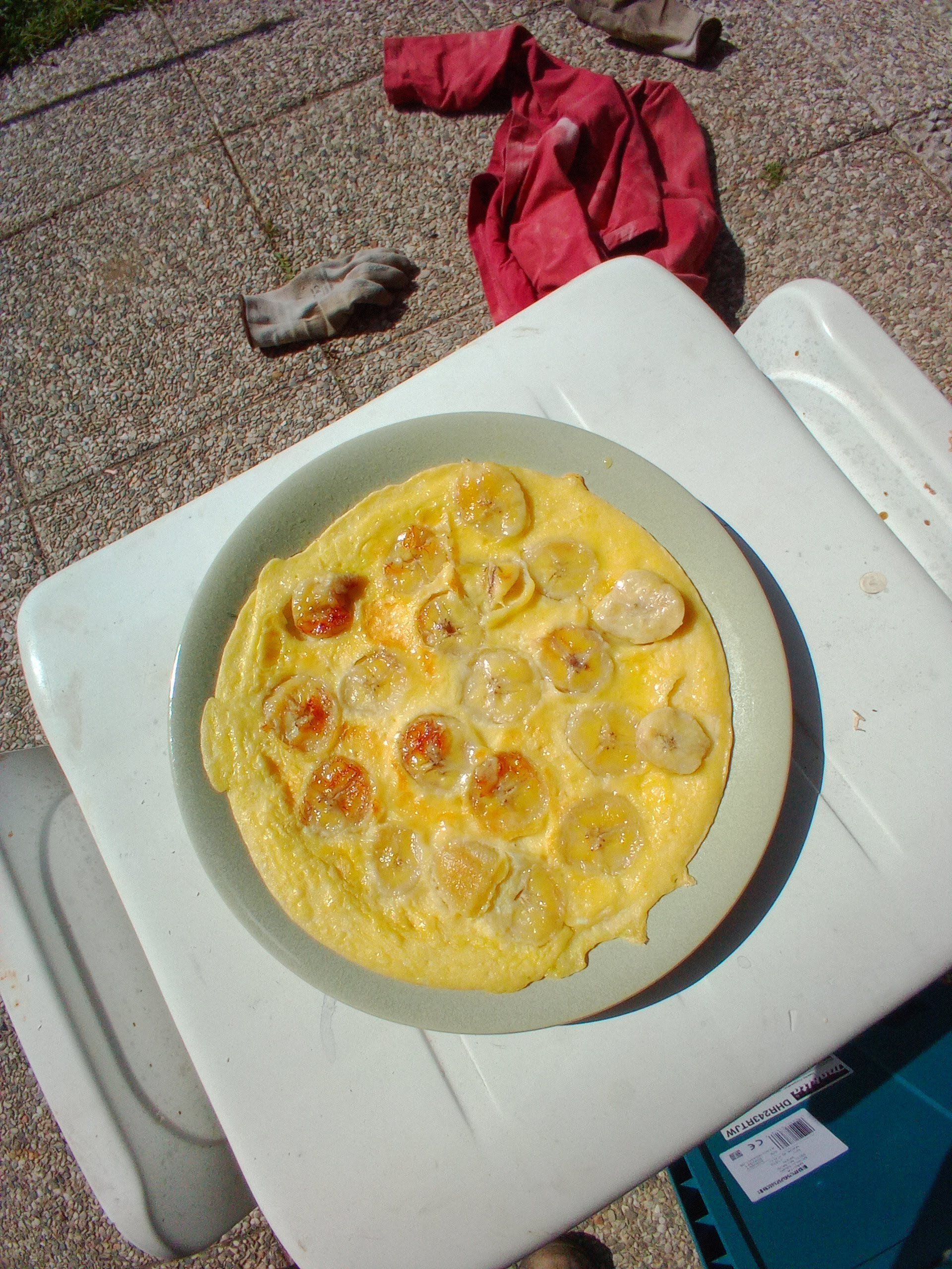 Ik heb tot nu toe elke dag een eitje gehad. Ik heb deze week van 2 eieren een pannenkoek met banaan van gebakken. Heerlijk. Die kippen lopen de hele tijd om mij heen en zijn erg nieuwsgierig met waar ik mee bezig ben. Ze worden ook steeds minder schuw en veel levendiger. Ik denk dat zo'n reis voor die kippen erg stressvol is. Ze beginnen nu steeds meer op de grond te krabben om wormen te zoeken. En omdat ik tegen ze praat wennen ze ook aan mij.