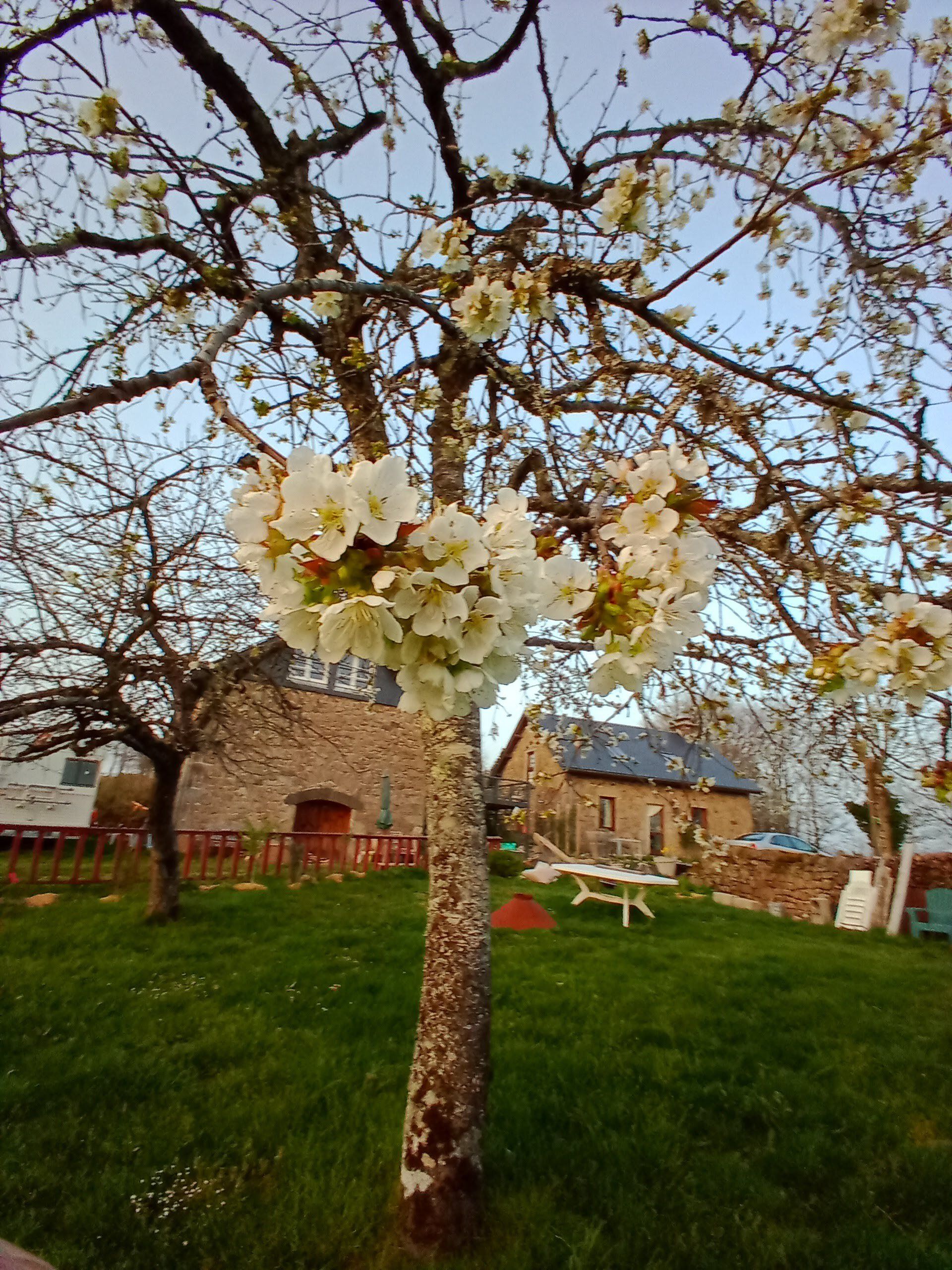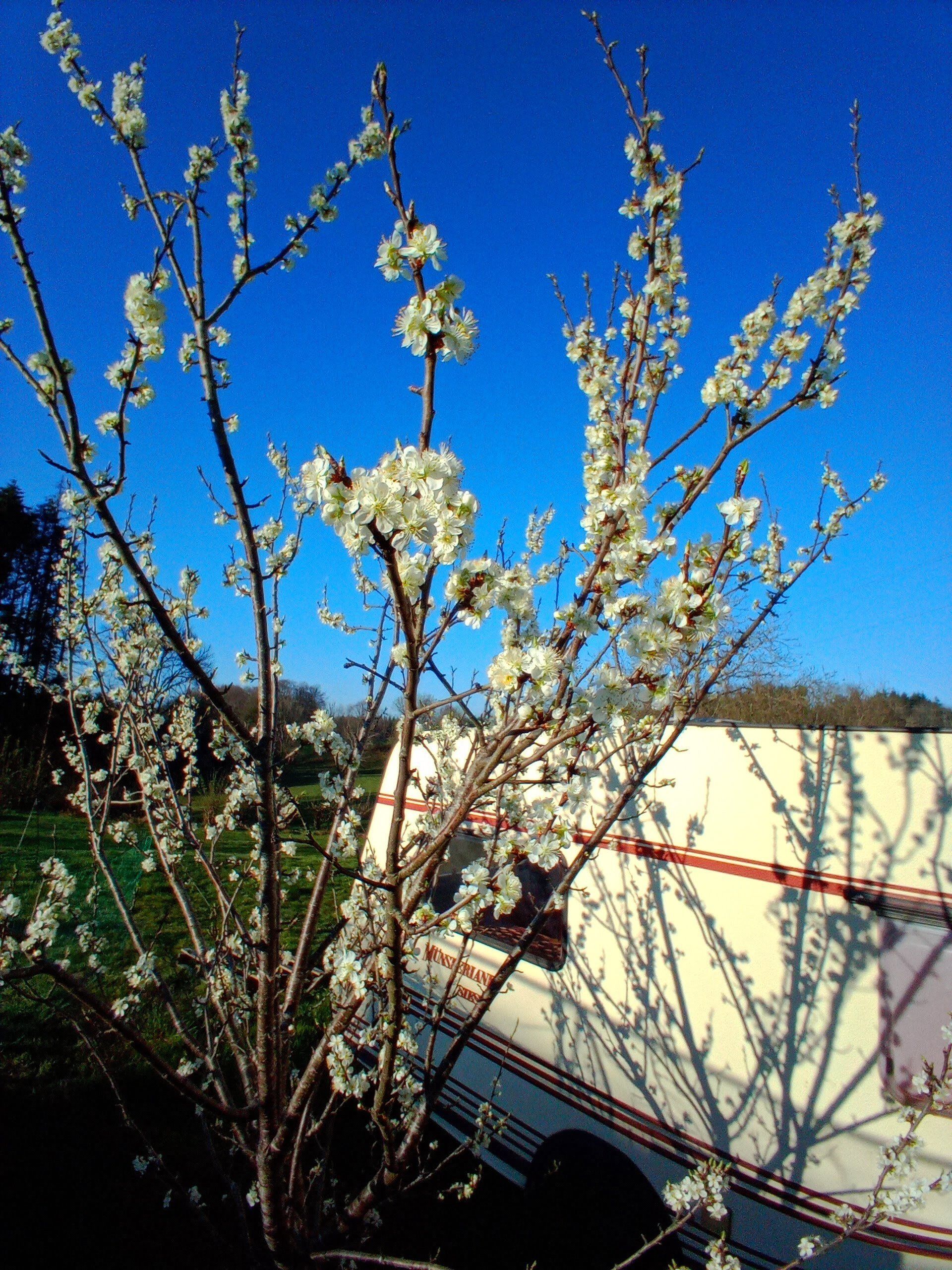 De hele week hebben we zomerse temperaturen gehad zo tussen de 20 en 25 graden. De kersen- en pruimenbomen staan al in bloei. Dat is eigenlijk veel te vroeg. Want volgende week slaat het weer volledig om en krijgen we weer winter met nachtvorst. Dat is funnest voor de bloemen. Ik hoop maar dat het goed gaat. Vorig jaar zijn de bloemen bevroren en heb ik heel weinig kersen gehad.