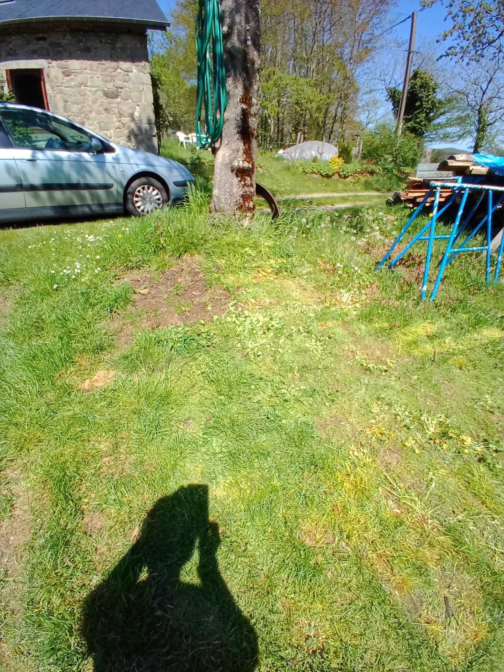 4 uur mee bezig. Mijn kippen vinden het lawaai van de grasmaaier maar niks. Iedere keer als ik er dan langs kom vluchten ze de kippenren in. En als het gras dan weer kort is ziet de tuin er stukken beter en netter uit.
