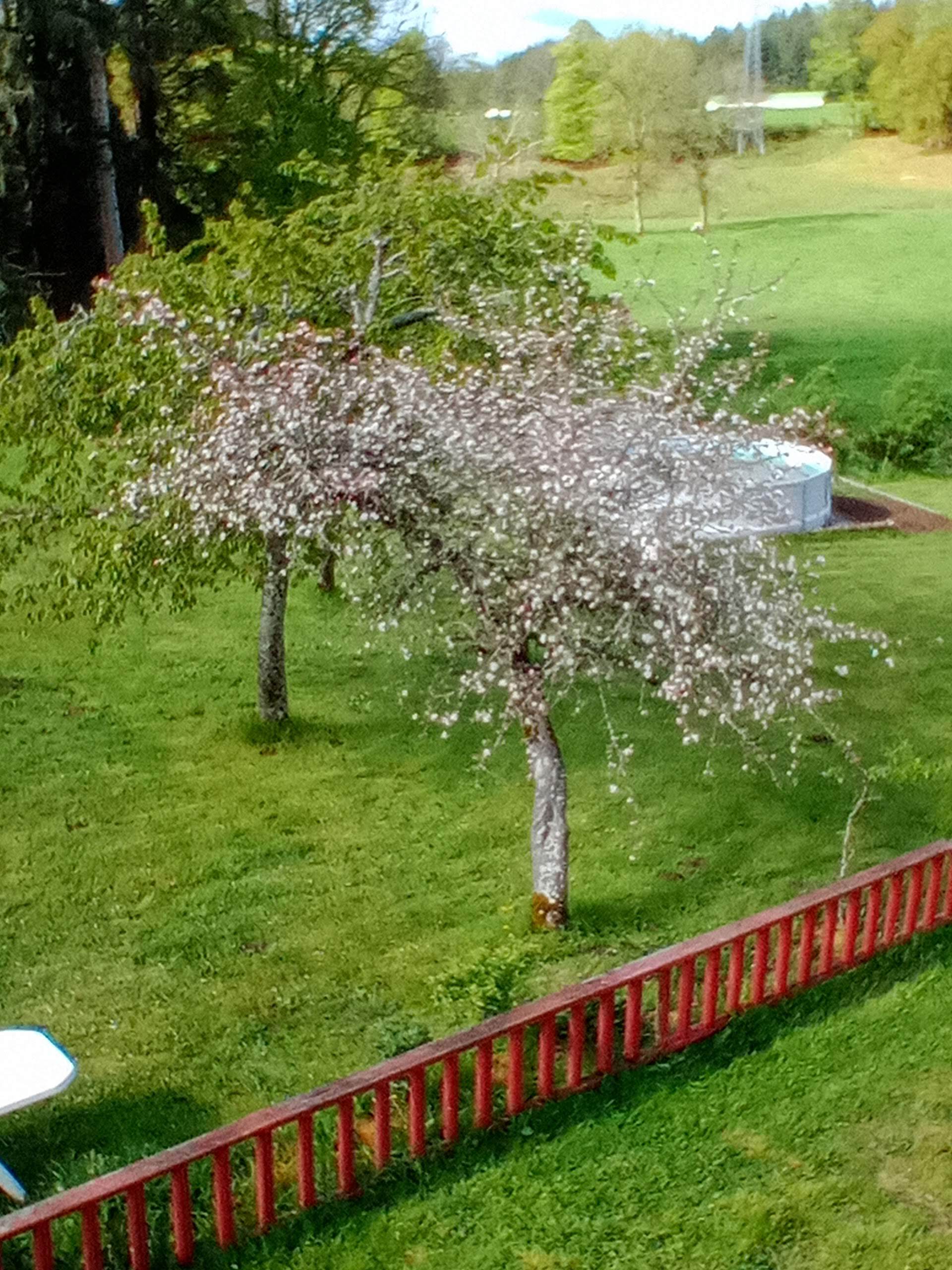 Mijn appelboom staat in bloei en daar geniet ik van. De kans op nachtvorst is er niet meer, dus hoop ik dat er een goede appeloogst zal zijn in de herfst.