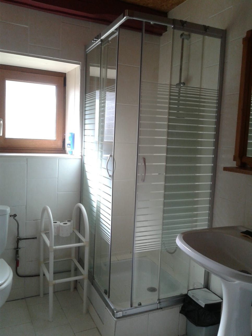 En daarna kon ik de olie verwijderen met ammoniak. Dat verwijderen van die kit ging prima en daarna nog schoonmaken met ammoniak ging niet zoals verwacht. Ik had op advies van mijn dochter de ramen en deuren opengezet. Toen ik de ammoniak op een doek wilde doen kwam er een flinke scheut uit. Ik moest hard lopen om buiten te komen omdat ik het benauwd kreeg van de ammoniak lucht. Na een half uur ben ik verder gegaan en is het gelukt om het schoon te krijgen. Toen ik de fles op tafel wilde zetten schoot de dop los ( niet goed vast gedraaid) en viel om. Dus moest ik weer snel naar buiten rennen maar pas nadat ik er snel een paar doeken had op gegooid. Later heb ik die doeken in een emmer met water gedaan en heb daarmee de doucheramen en een aantal andere ramen buiten mee schoongemaakt.