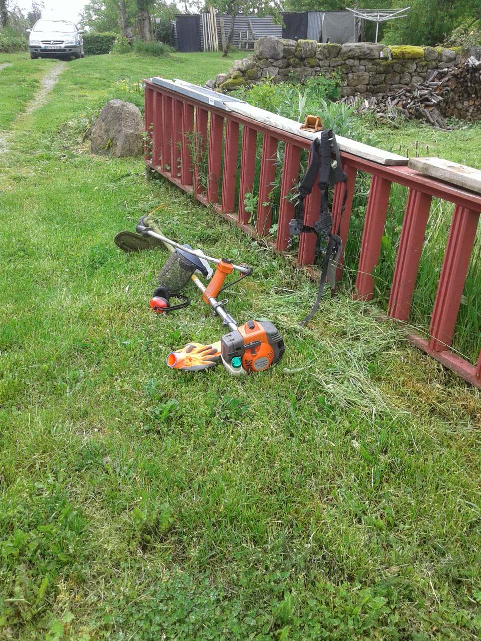 En omdat het zeer groeizaam weer is groeit in de tuin ook alles gestaag. Er komen steeds meer bloemen en het gras moet ook om de paar dagen worden gemaaid. En ik heb met de bosmaaier de randen op het terrein weer kort gewiekt.