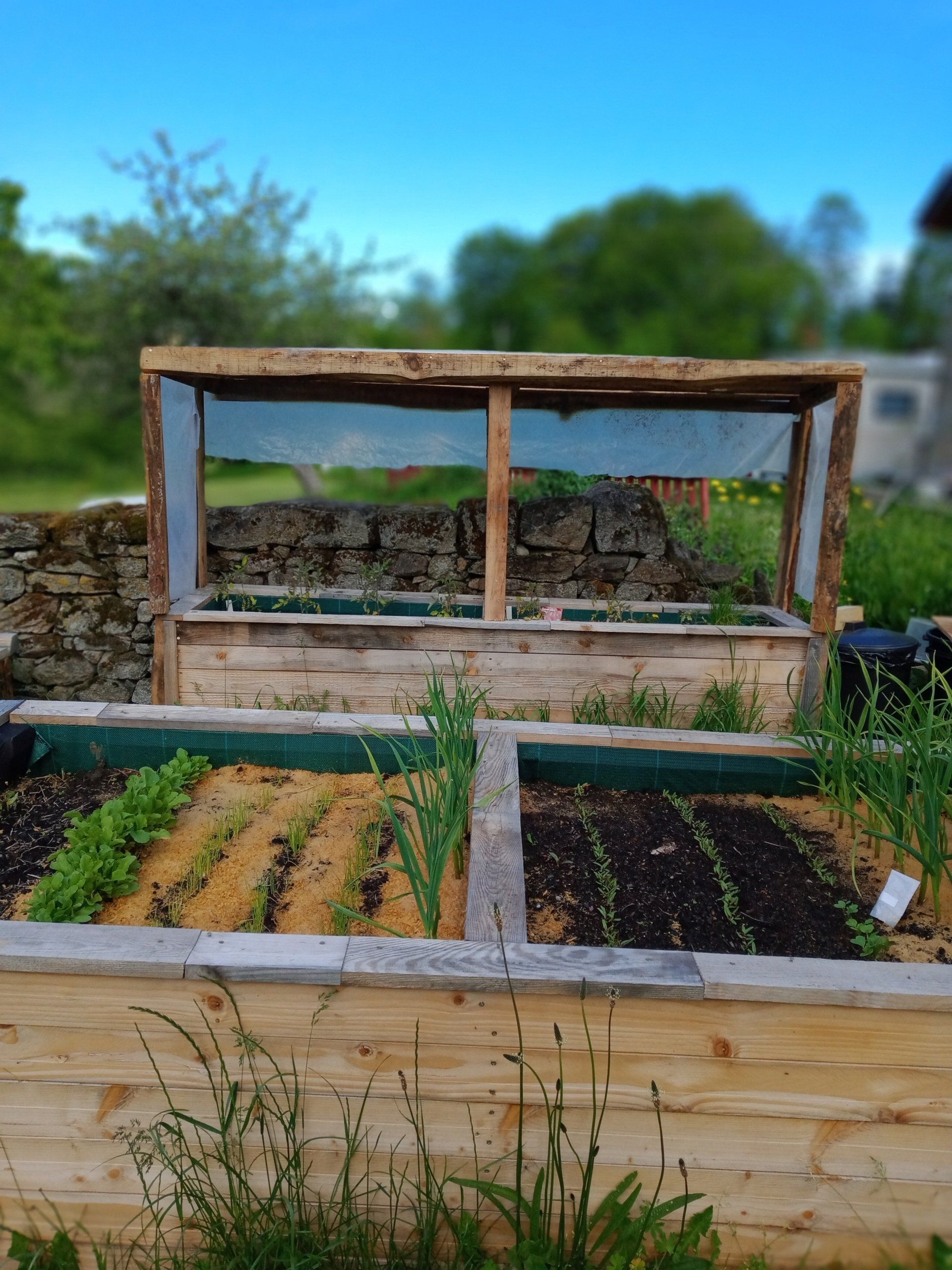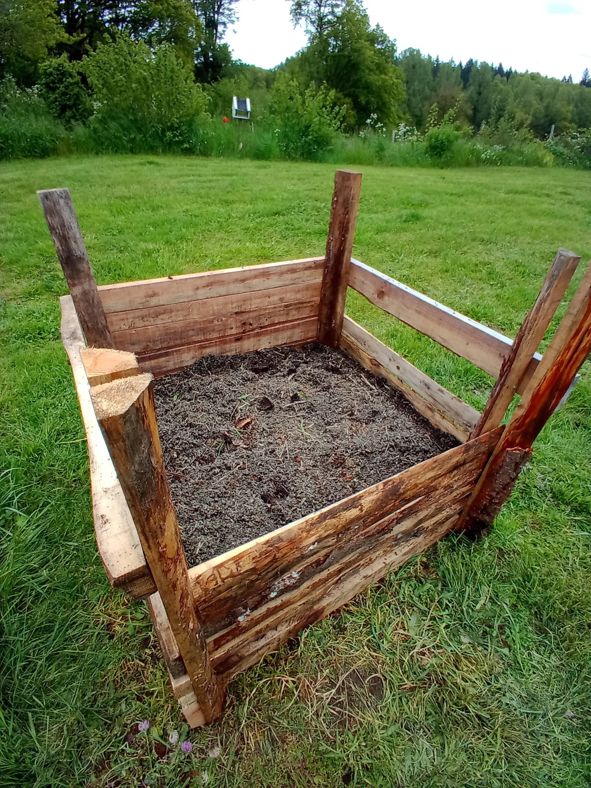 Ik heb de compostbak nog niet helemaal klaar, maar ik heb de inhoud van de oude bak wel kunnen overzetten. En ik heb zaagsel uit de kippenren gehaald en dat er in laagjes in gedaan. De kippen hebben het zaagsel al aardig verwerkt in compost doordat ze er in poepen en omdat ze er constant in zitten te graven. Ik hoop dat ik er straks in de herfst goede compost aan overhoud zodat ik die weer in de groentetuin kan gebruiken