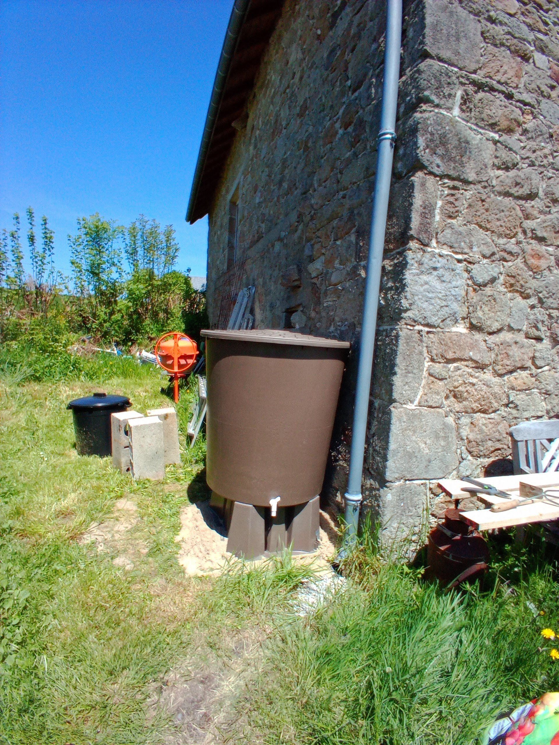 Woensdag heb ik in Mauriac een wateropvangbak van 500 liter gehaald en ik heb hem de volgende dag op de plek gezet. Zand eronder om de grond te egaliseren en voor het kraantje moest ik een gat in de bak maken. Al met al ben ik er 2 uur mee bezig geweest. Mijn buurman heeft mij beloofd om binnenkort de regenpijp aan te passen. Ik heb een zinken regenpijp en werken met zink is zijn beroep geweest. Sterker nog, hij heeft zelf al mijn dakgoten geïnstaleerd. Hij heeft samen met een andere buurman meegewerkt aan de renovatie van mijn opstallen. En als de regenpijp is aangepast kan ik ook regenwater opvangen vanaf mijn eigen huis. Ik moet er wel zorgen dat ik zoveel mogelijk regenwater kan opvangen, nu ik een groententuin heb. En ik wil het zwembad ook proberen te vullen met regenwater. En daarvoor heb ik nog veel water nodig.