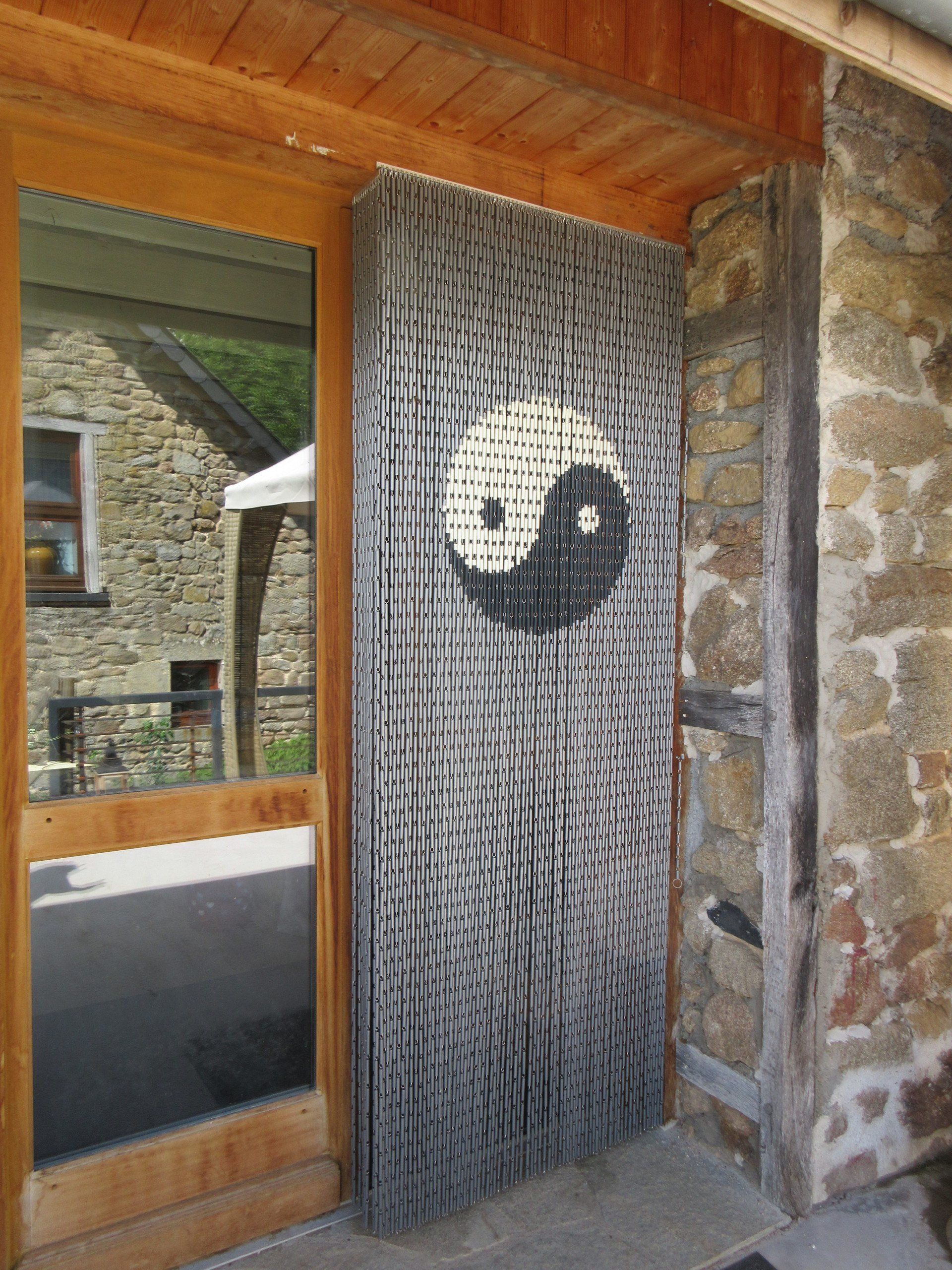 Gelukkig was de pols niet gebroken. Hij had de pols overbelast en moest een aantal dagen rust houden. Na een paar dagen gelopen te hebben met tape en verband voelde het een stuk beter. Gelukkig was het weer wisselvallig en kon er toch niets worden gedaan. Desondanks heeft hij voor mij iets speciaals gemaakt. Hij heeft een vliegen/kralen gordijn voor bij mijn voordeur gemaakt. Het patroon "Ying en Yang" heeft hij zelf getekend en ontworpen speciaal voor mij. Uniek en prachtig.