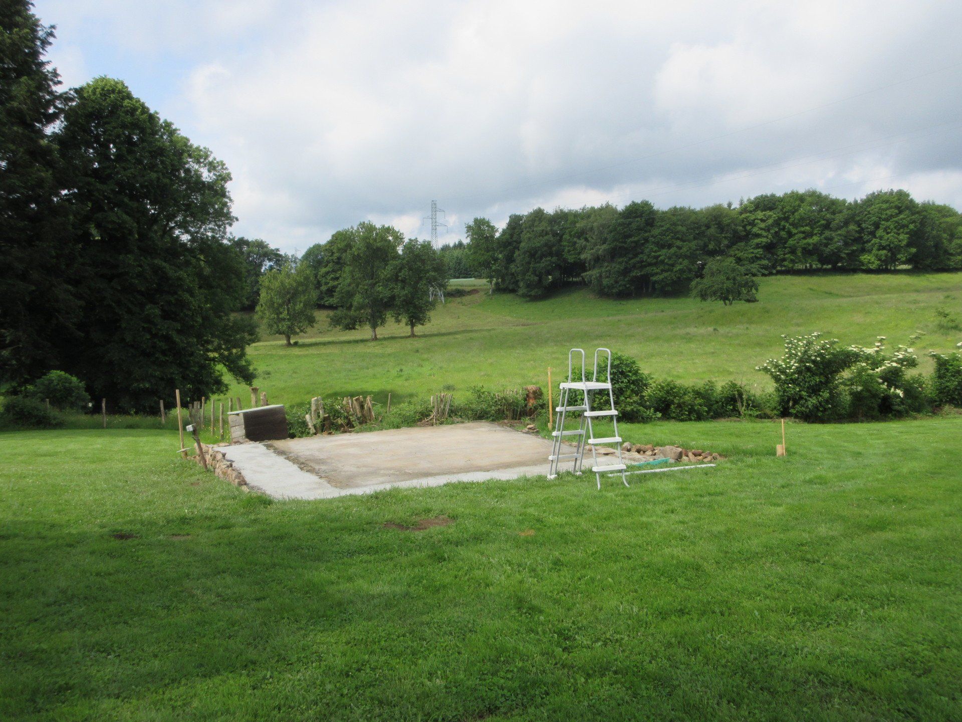 Er is aan de vloer van het zwembad gewerkt. De buitenste laag is gestort op gelijke hoogte als de oude vloer.