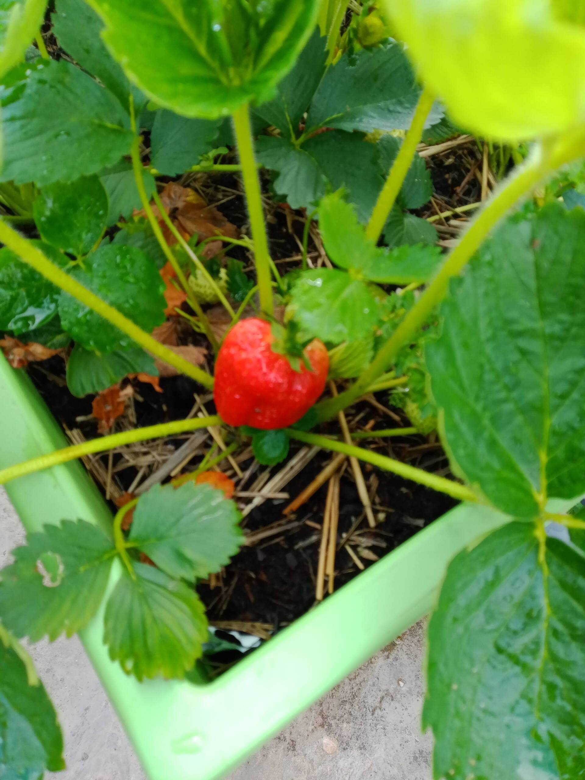 Vanmorgen heb ik mijn eerste aardbei uit eigen tuin gegeten. mmmmm lekker.