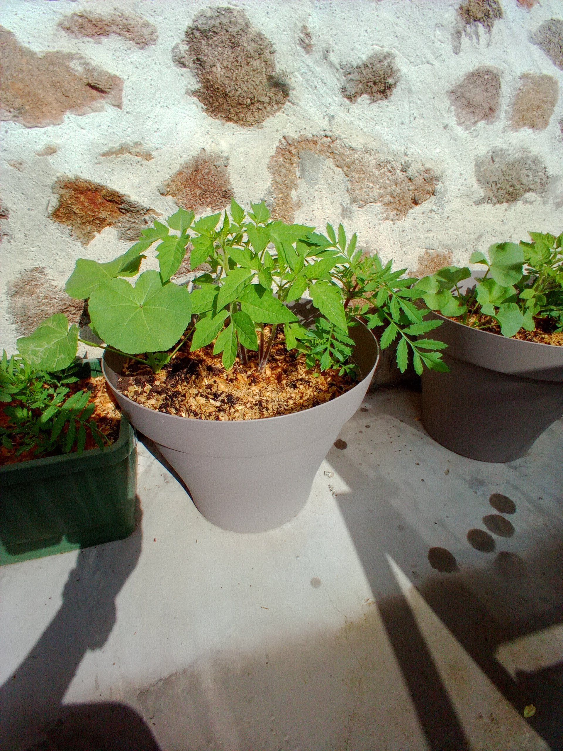 De tomaten in de plantenbakken op mijn terras beginnen ook flink te groeien (zie foto). En nu wachten op resultaat.
