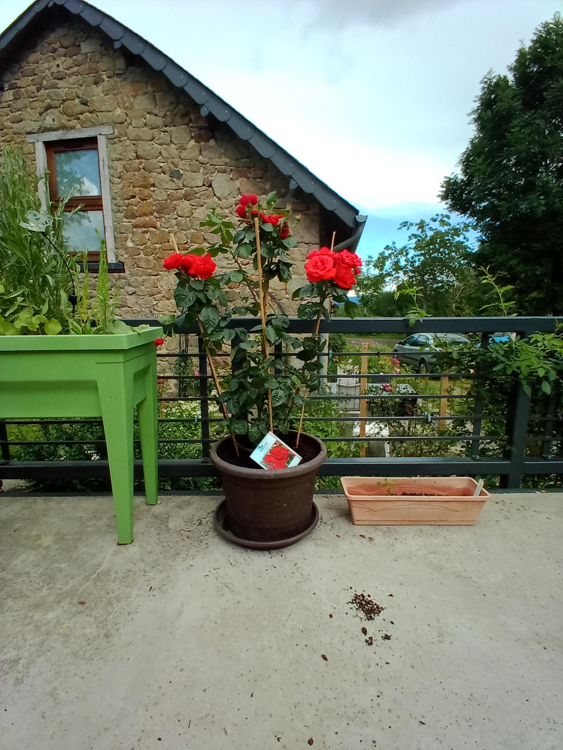 Ik heb van Nederlandse vrienden een prachtige roos gekregen. Ik heb ze in het voorjaar ergens mee geholpen terwijl zij in Nederland vast zaten vanwege de Corona. Het had niet gehoeven maar ik vindt het wel een leuk gebaar. Voorlopig heb ik hem in een grote pot op mijn terras staan en in de herfst ga ik er een mooi plekje voor zoeken in de tuin.