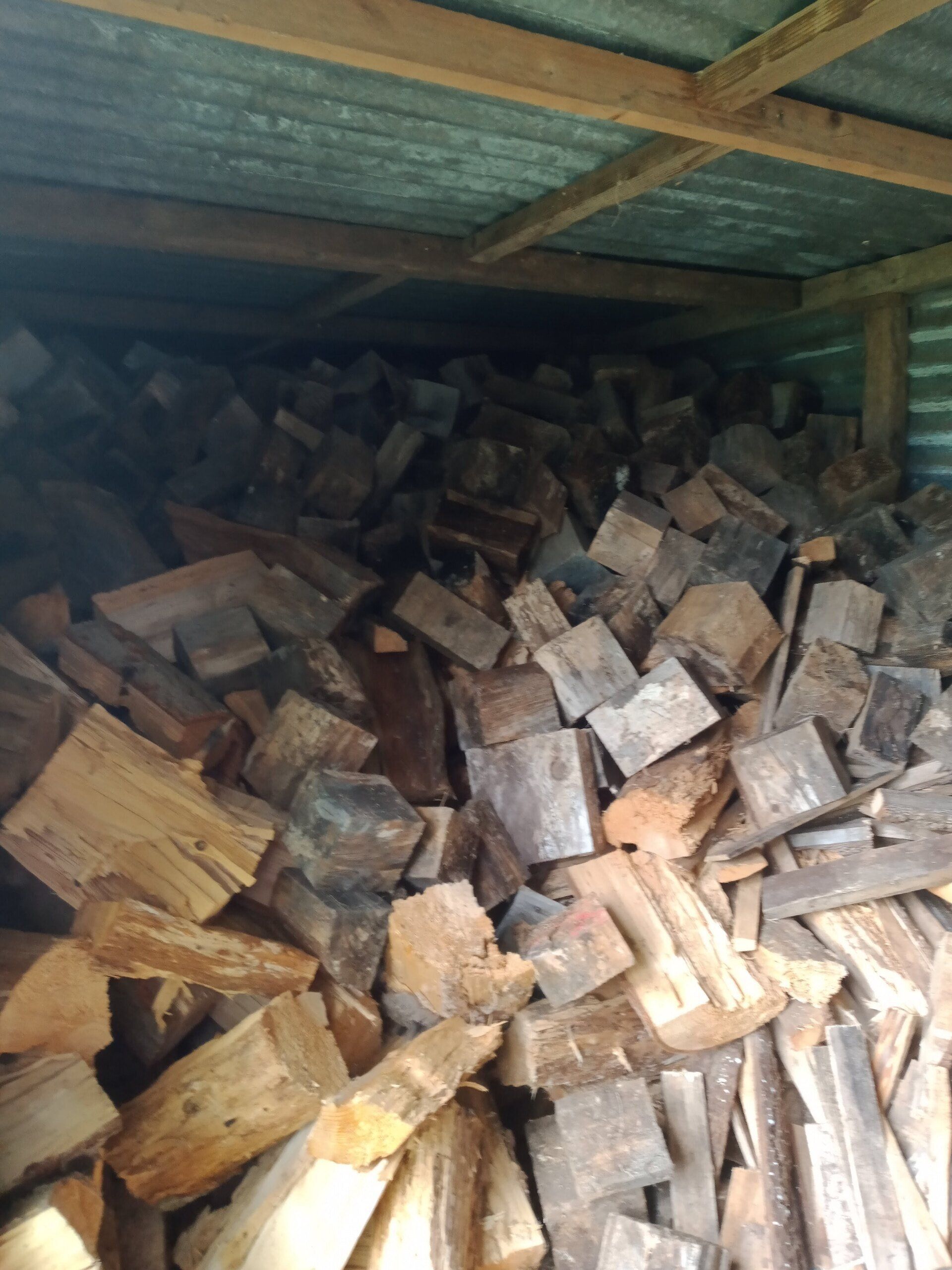 En ik ben nu bezig met de bult hout, naast het vakantiehuis, om die op te ruimen. Bijna de helft is al weg. Die bult met hout, 4 kub, zijn allemaal brokken die rechtstreeks het houthok in kunnen. Dat heb ik niet direct kunnen doen want eigenlijk was dat hout van een vriend. Zijn huis staat te koop. En ik had tegen hem gezegd dat het tijdelijk wel bij mij mocht liggen, maar dat het dan voor 1 juni weg moest zijn. Zo niet, dan gaat het in mijn eigen houthok. En dat hok begint al aardig vol te raken.