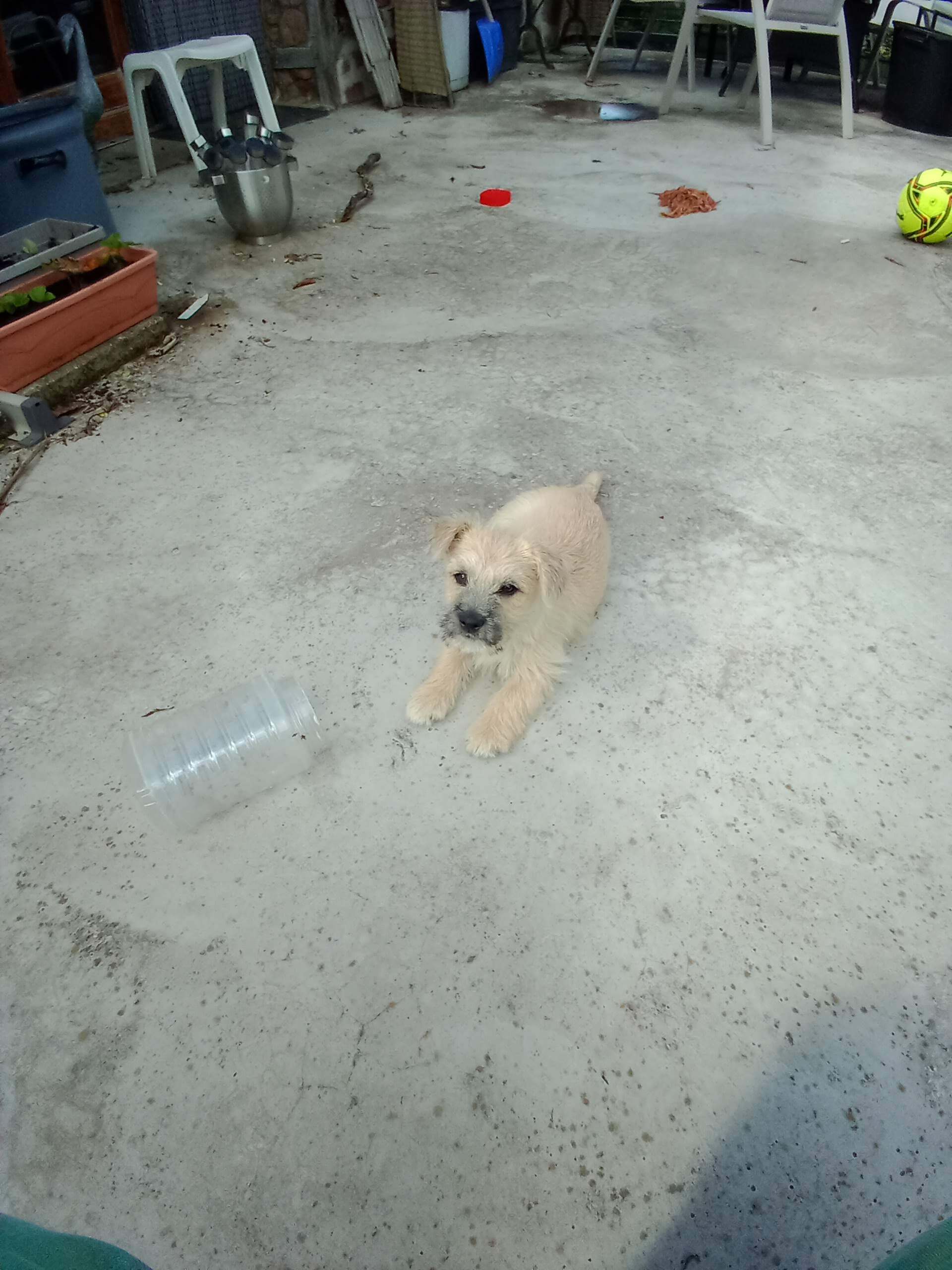 Ik heb zelfs het babybadje voor de hondjes neergezet. En na een wandeling geniet Bailey er ook van.
