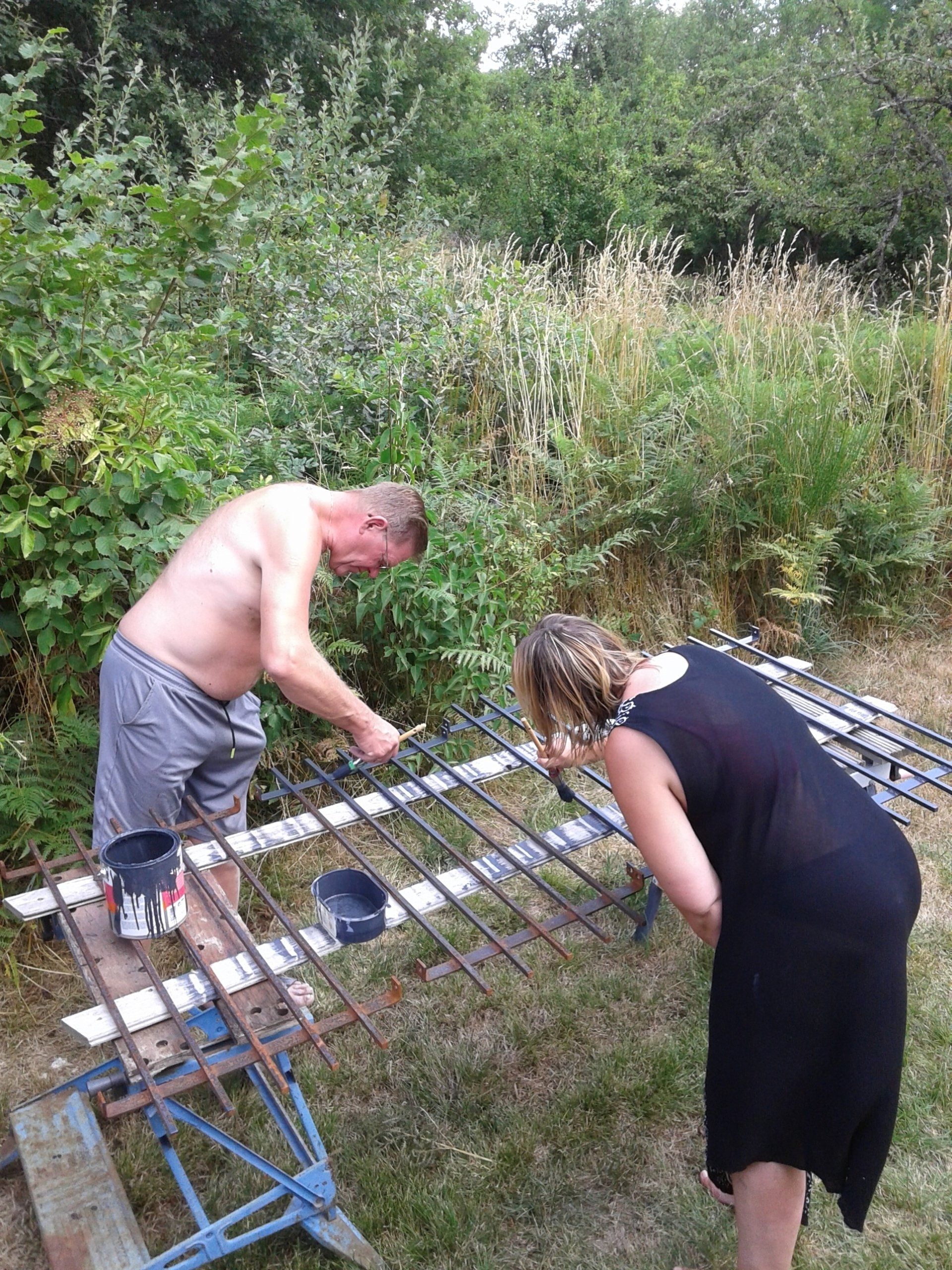 In die tijd zijn mijn vrienden bezig geweest met het maken van een trapleuning langs de trap en ze hebben een groot gedeelte van de balustrade geverfd. Nu ben ik eindelijk van die oranje menie kleur af. Wat is het mooi geworden.