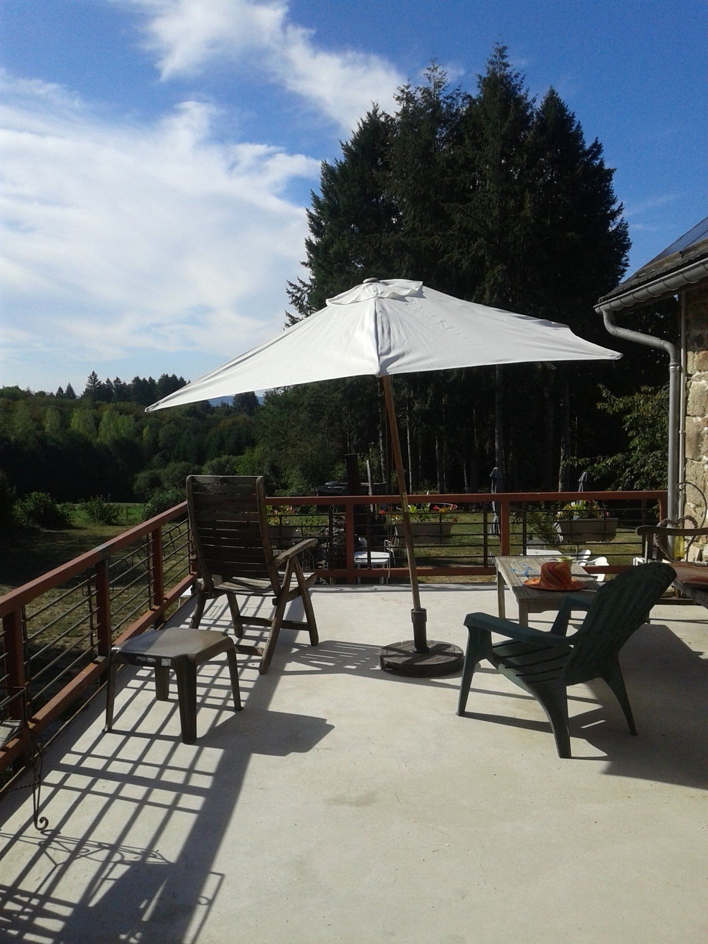 En ik heb het dekkleed van de partytent opgeruimd. Ik heb daar de hele zomer veel onder gegeten en gezeten omdat het op die plek ook lekker waait. En met die hitte van deze zomer was dat wel heel lekker. Maar nu we naar de herfst toe gaan waait de wind toch harder en was ik bang dat het kleed zou stuk waaien. Dus nu zit ik op het terras onder een parasol of in de schaduw van de bomen of onder het terras in de buitenkeuken. Ook dat zijn heerlijke plekjes.