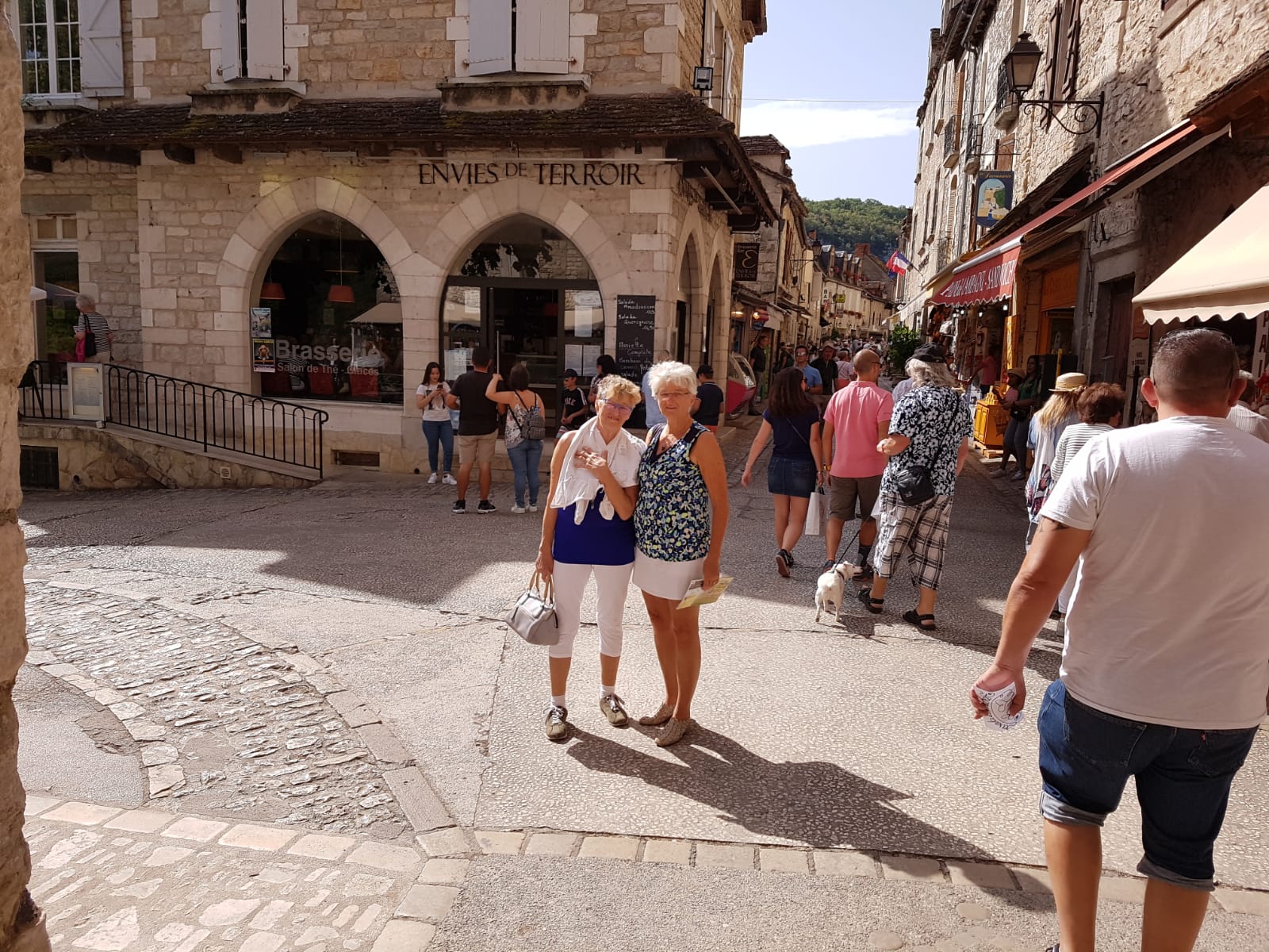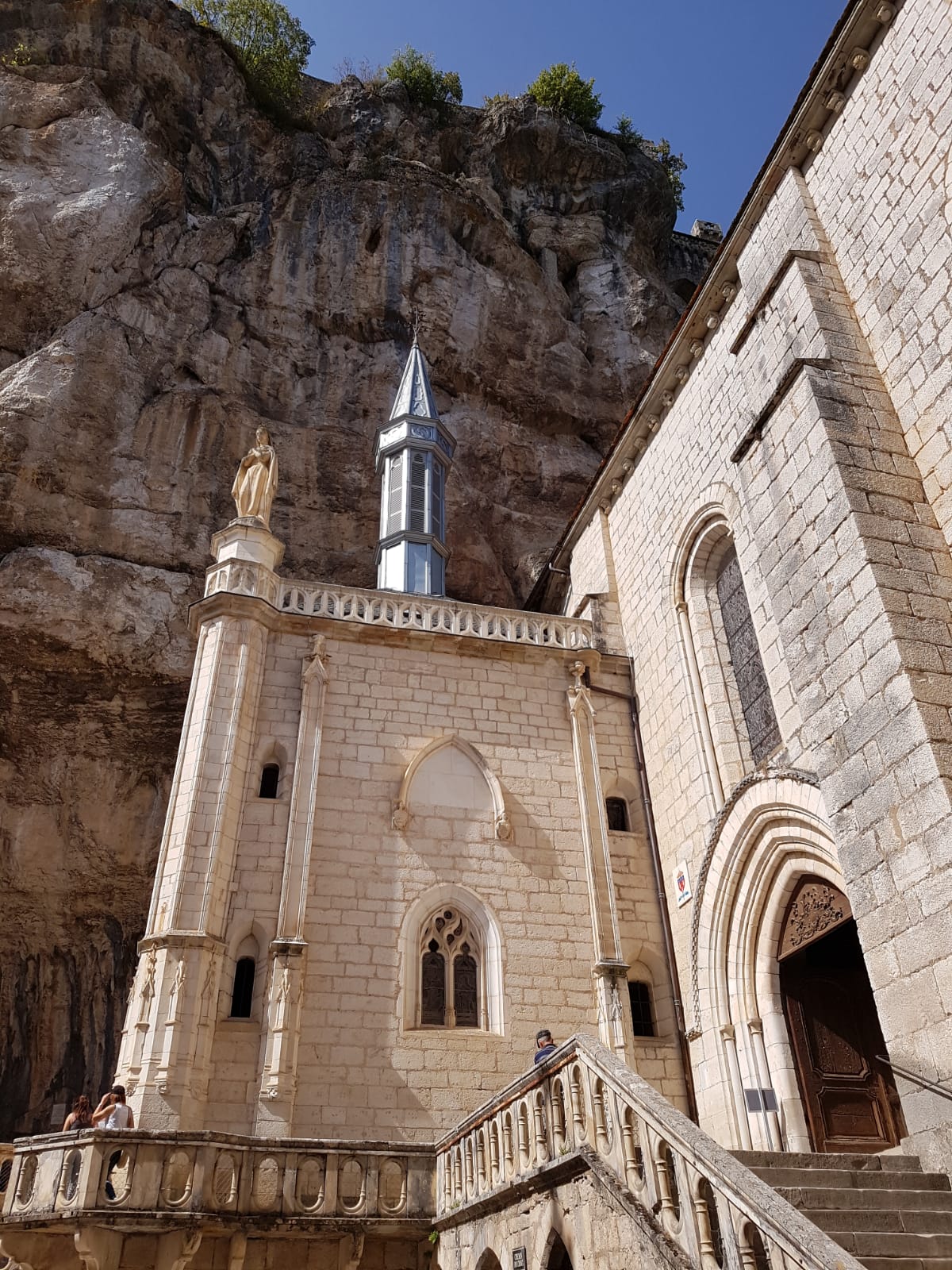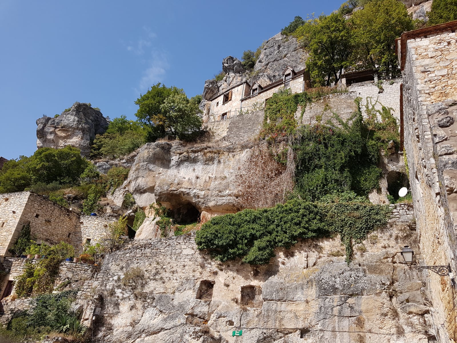 De volgende morgen na een heerlijk ontbijt zijn we naar het stadje Rocamadour gereden. Dat stadje is tegen een berg aangeplakt. Bijna alle gebouwen zijn gerestaureerd en het is helemaal op het toerisme gericht. Leuke winkeltjes en gelegenheden om wat te eten en te drinken. Midden in het dorp staat een kerk en een klooster tegen de berg aan geplakt. Heel erg mooi en indrukwekkend. Vanaf de camper zijn we naar beneden gelopen naar het stadje en vanaf beneden zijn we met een lift/gondel naar boven gegaan. Onze volgende stop zou op een camping in de buurt van Beaulieu Sur Dordogne zijn. Die konden we helaas niet vinden en besloten we om door te rijden weer naar Collonges la Rouge om daar te overnachten. Nadat we daar nog even hebben rondgelopen en gedronken, hebben we bij de camper gegeten en nog een heerlijke avond buiten gezeten. De volgende dag hebben we op de terugweg nog boodschappen gedaan en een stukje verderop aan een meertje gegeten. Aan het eind van de dag waren we weer thuis.