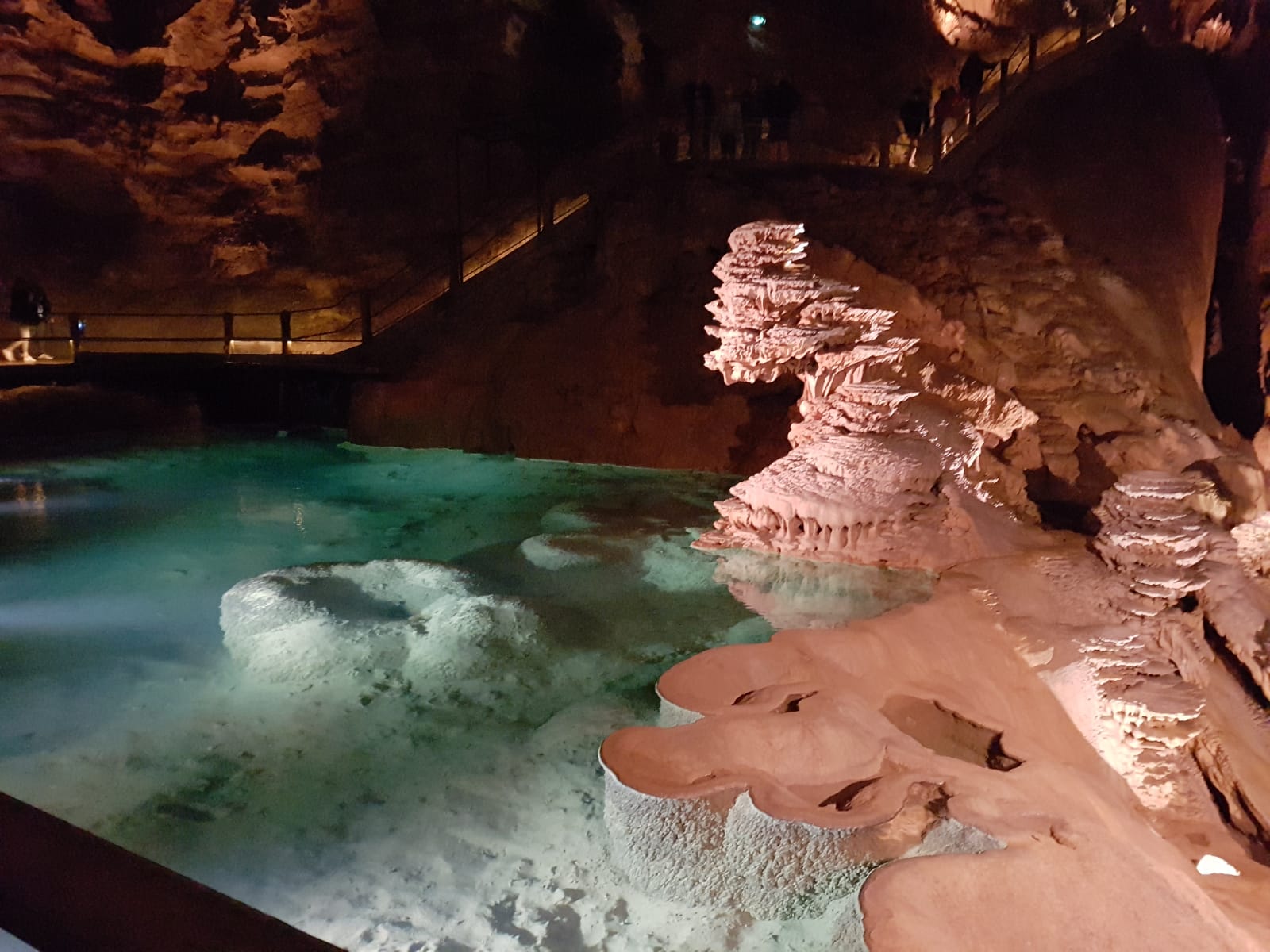 De volgende dag zijn we naar de grotten van Padirac gereden. Het eerste stuk in de grotten ga je met een bootje en daarna is er een route door verschillende kamers en op verschillende hoogtes. Aan het begin krijg je een koptelefoon zodat je de gehele route uitleg krijgt over hoe ze de grotten hebben ontdekt in je eigen taal. De terugweg is ook weer in een bootje. Een genot om daar rond te lopen. Bij de camper hebben we aan een picknicktafel ons broodje gegeten en daarna zijn we vertrokken naar een camping vlakbij. Aangezien ik geen zonnepaneel op de camper heb kan ik de koelkast niet koel houden. Op de camping hebben we de hele nacht stroom op de camper gehad en kon de koelkast weer aan. 1 dag zonder stroom wil nog wel maar niet langer. We hebben 's avonds een biertje aan de bar gedronken.