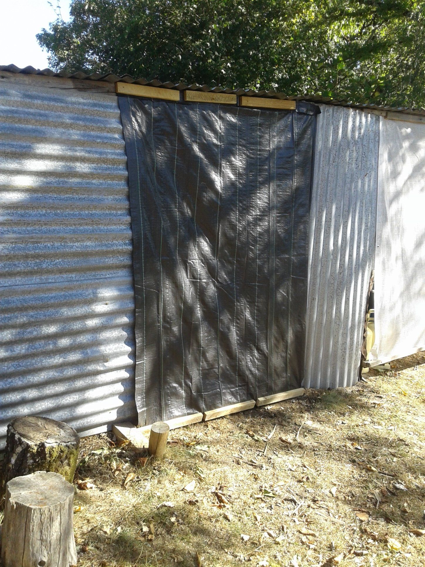 Ik heb de kleden voor de houthokken vervangen. Dat wat er voor hing was helemaal gerafeld en hield geen regen meer tegen. Nu is het weer netjes en waterdicht en ik ben tevreden. Toch ben ik voor 4 ingangen een hele dag bezig geweest. En zo wordt het stukje bij beetje steeds mooier.