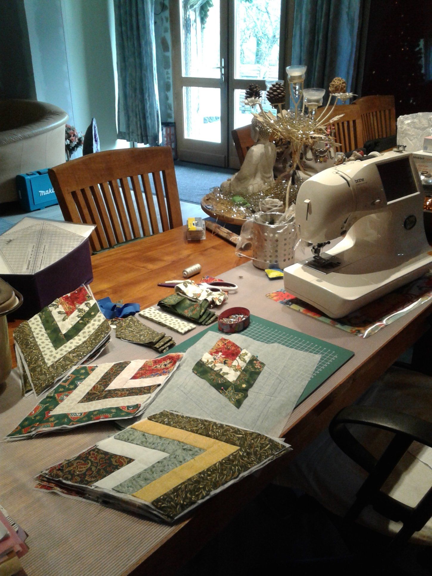 Ook ben ik een paar weken geleden begonnen met blokjes (zie foto) voor een nieuw kerstkleed voor onder de kerstboom van mijn zus. Ik hoop dat ik hem nog klaar krijg voor de kerst.