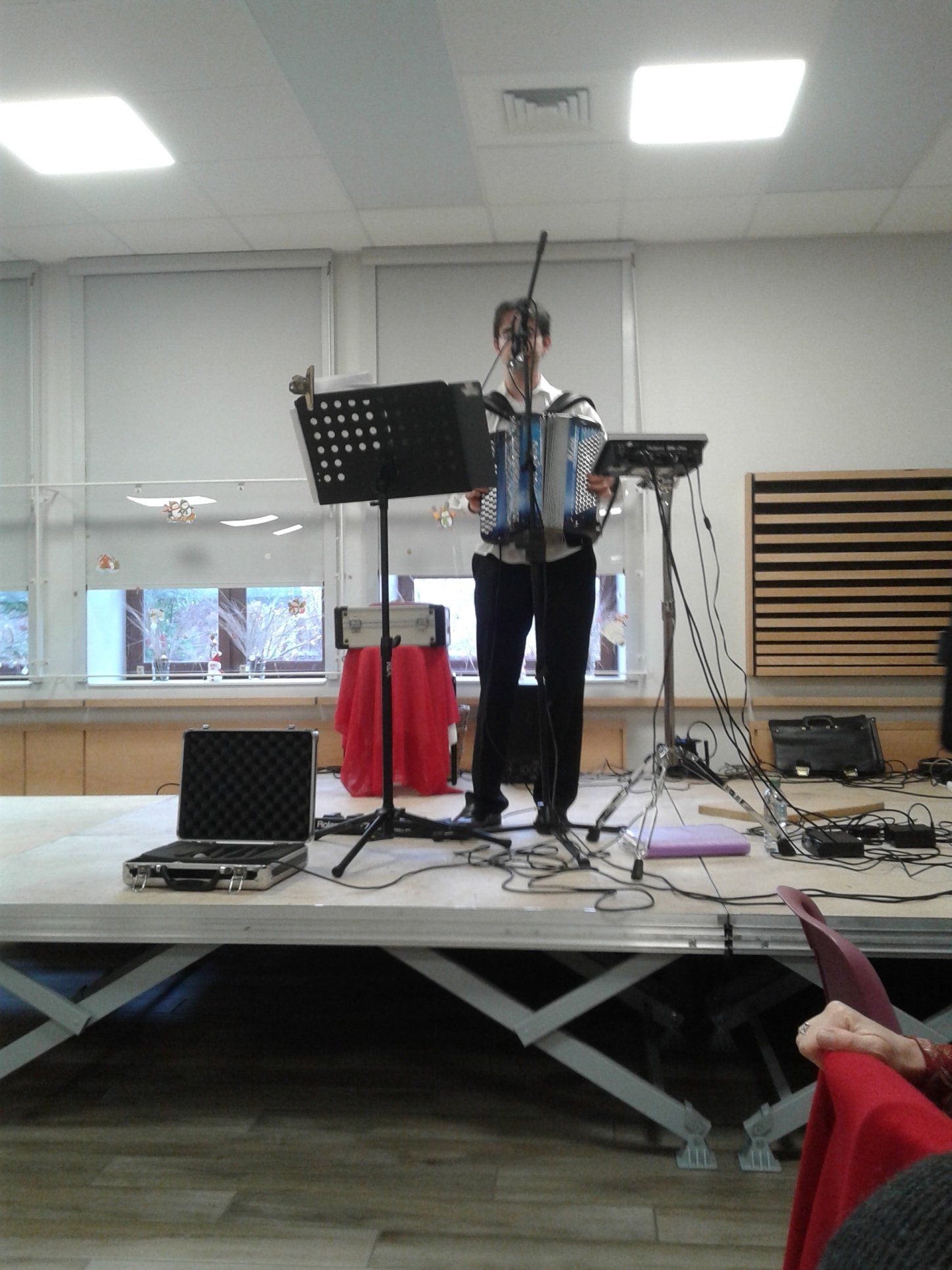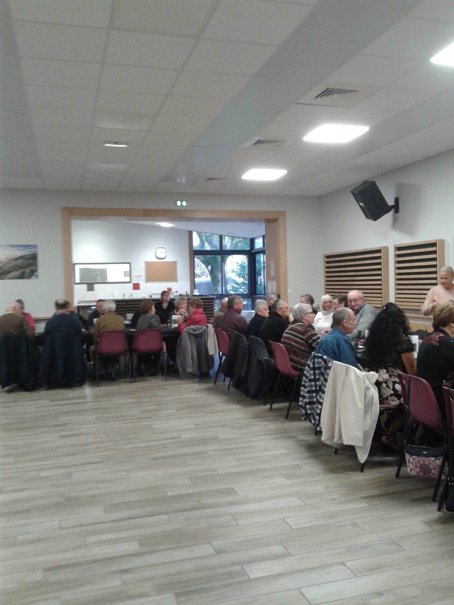 Een week later was er weer een feest, maar dit keer vanuit de gemeente Sérandon. Elk jaar in december verzorgen ze een maaltijd voor de oudere inwoners van de gemeente Sérandon. Iedereen vanaf 60 jaar wordt uitgenodigd. Dus ik nu ook nu ik net 60 jaar ben geworden. Zelfs onze burgemeester van 84 jaar was aanwezig. We werden bediend door medewerkers die bij de gemeente werken (zie foto). De muziek werd verzorgd door de zelfde accordeonist als vorige week samen met een collega drummer die ook nog zong. Ook dit was heel erg leuk.