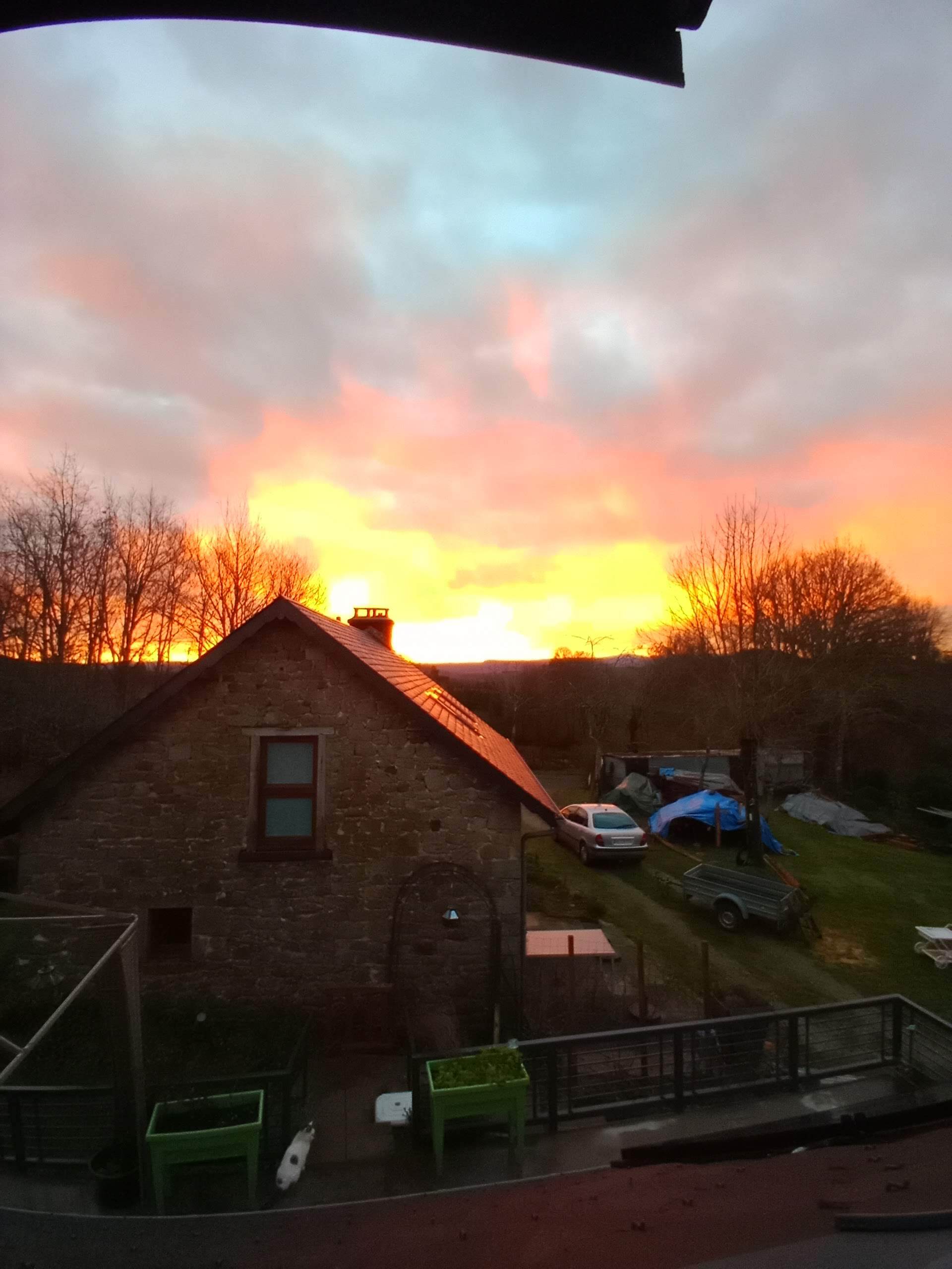 Van de week werd ik op een morgen wakker en zag ik een rode gloed buiten. Ik ben direkt opgestaan om te kijken of ik er een foto van kon maken. Wat een prachtige lucht. Dat is nog eens leuk wakker worden.