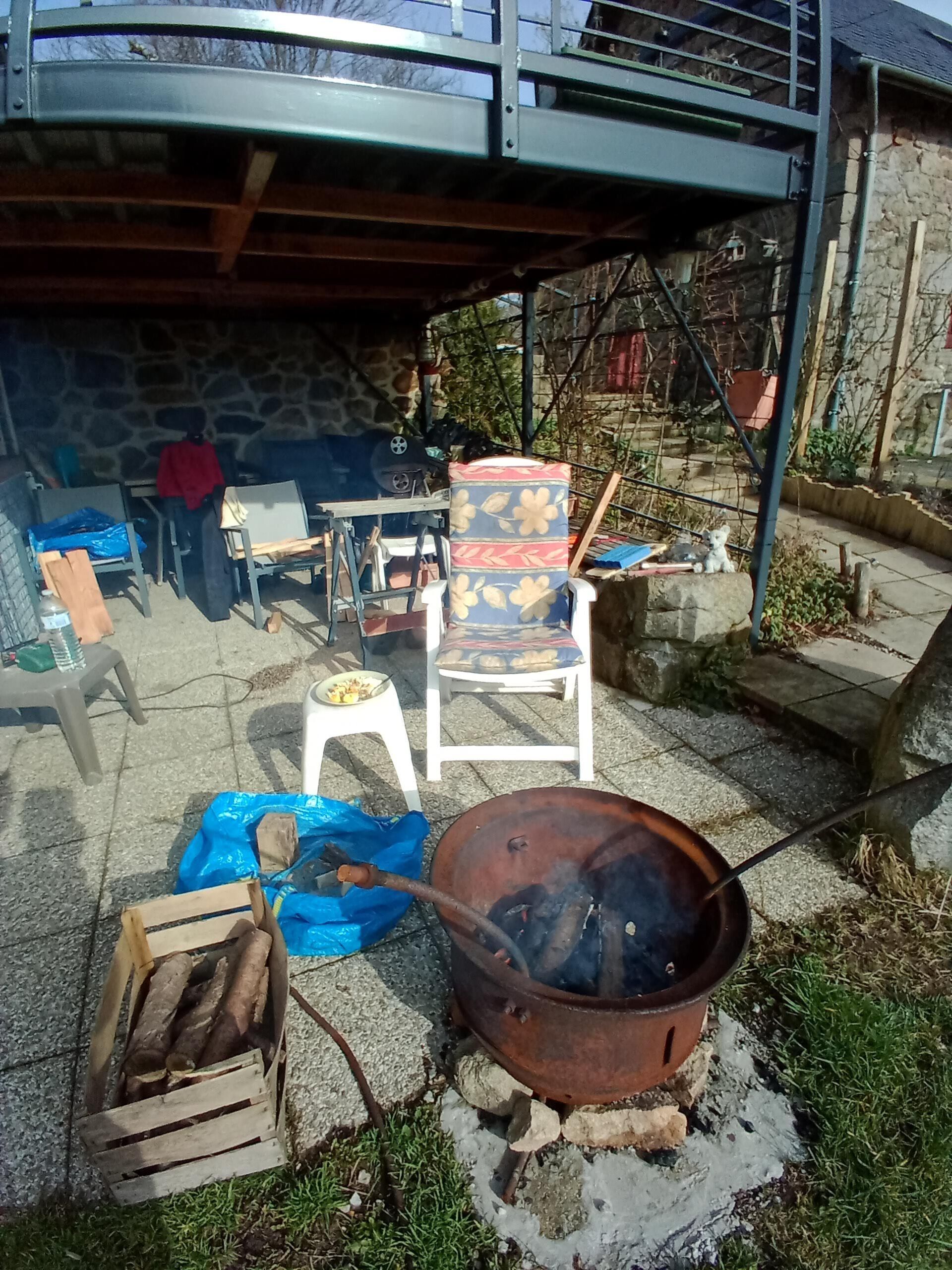 Tijdens het werken heb ik een vuurtje gestookt. Tussen de middag heb ik bij dat vuurtje een boterham gegeten en