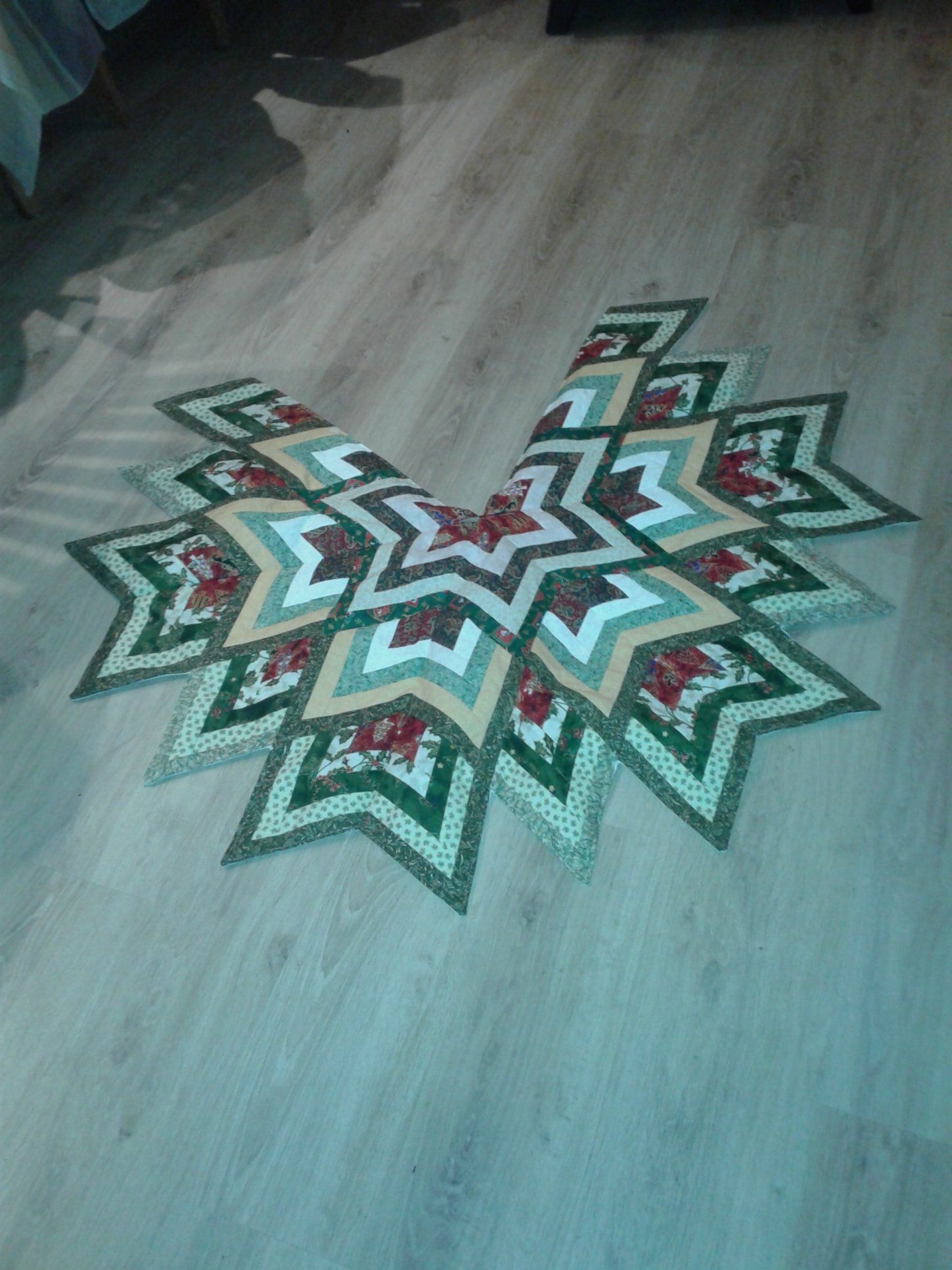 Het kerstkleed voor onder de kerstboom van mijn zus is klaar. Dat was nog een hele klus om hem klaar te hebben voor de kerst. Na 2 weken mijn zus te hebben verzorgt is ze vlak voor de kerst weer naar haar eigen huis vertrokken. Ik ga nu dagelijks bij haar langs om brandhout voor haar binnen te halen, te helpen met douchen en andere kleine dingen. Ze redt zich heel goed. Een paar keer per week gaat ze naar de fysio om oefeningen te doen met haar arm. Door deze bewegingen krijgt ze meer vertrouwen in wat ze kan en heeft daardoor ook minder pijn. Dagelijks moet ze thuis haar oefeningen doen. Met de kerstdagen heeft ze bij mij gegeten. Een Duitse traditie: Konijn met klösse en sperziebonen en als toetje ijs met advocaat en slagroom. En tijdens de kerstdagen hebben we samen een Duitse muziek kerstshow gekeken en kerstfilms. Halverwege de avond bracht ik haar weer na huis. Waarom een Duitse traditie en niet Frans? Onze moeder is van Duitse afkomst en mijn zus heeft zo met kerst haar tradities die ik ook wel leuk vindt.