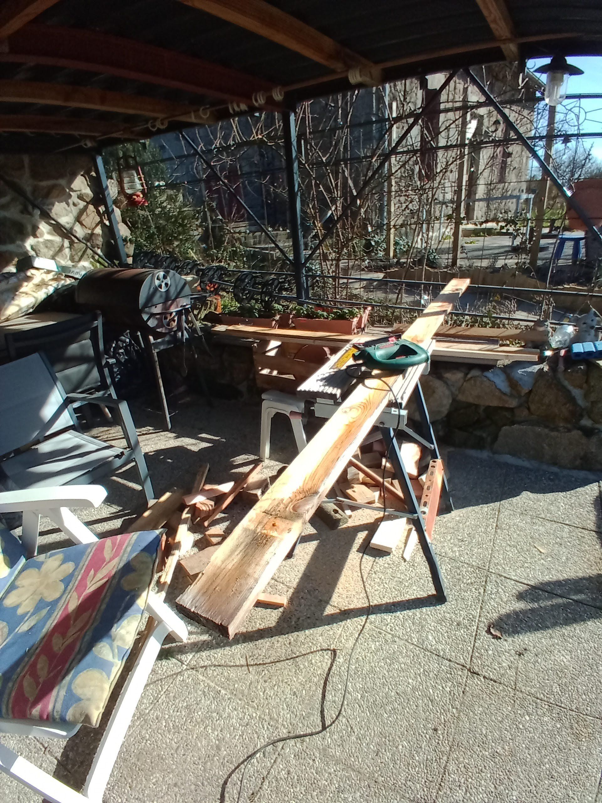 Inmiddels heb ik alle oude planken, uit de loods van de zagerij, opgehaald en verzaagd tot brandhout.